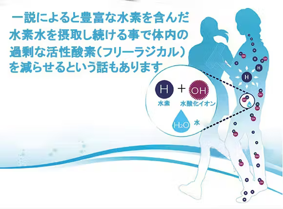 (*ただし、「水素水」を飲むことに関して、国から薬事的に認められた効果はまだありません。水素水が、老化やガンの原因となる活性酸素を減らしてくれるから健康にいい」というのは、まだ仮説段階にある状態と言われています)
