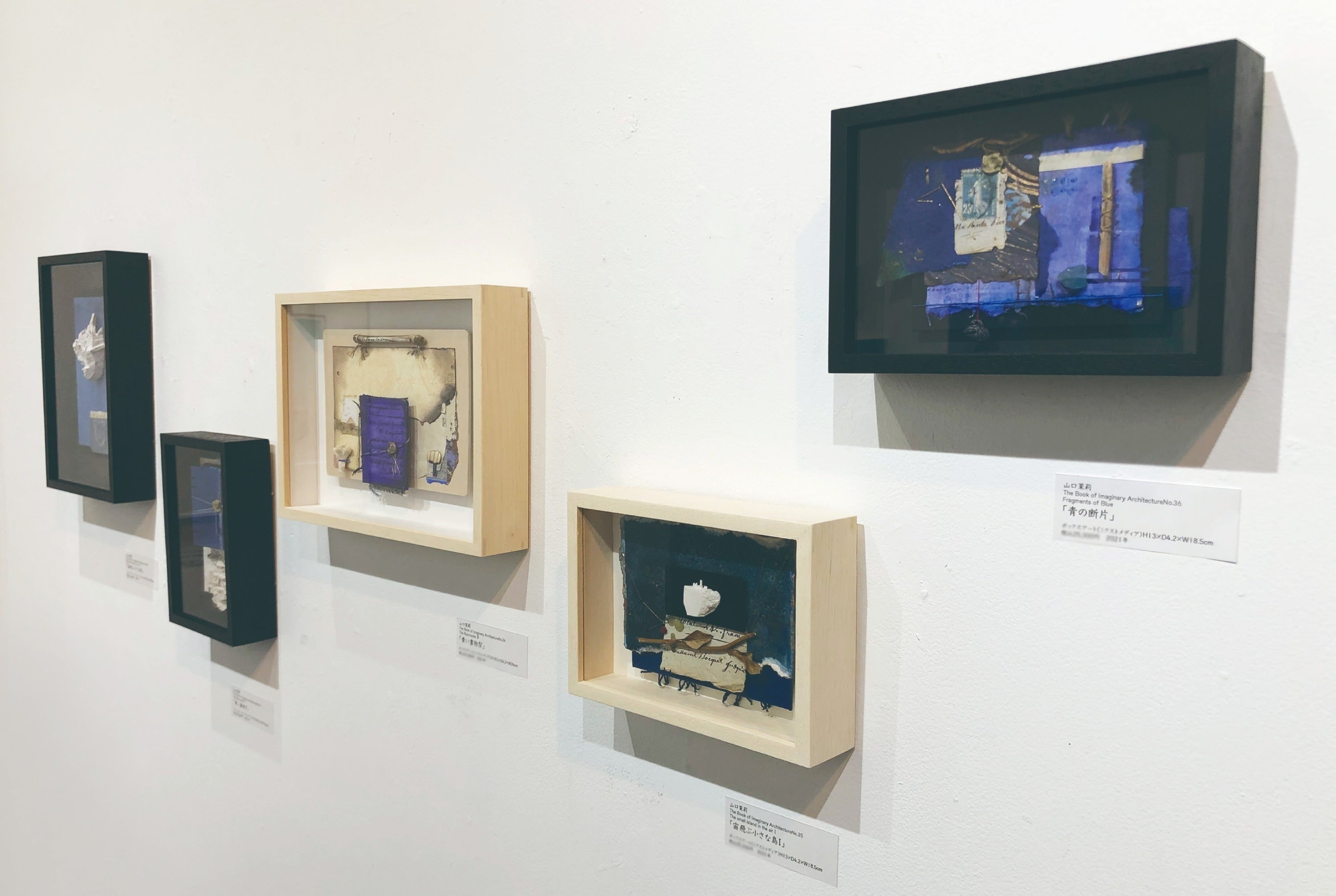 今回の展示では2019年より制作し始めたボックスアートをメインに展示します。ボックス=函のもつ絶対的な圧縮された空間に「黒の肖像〜思考の夢」という主題を与えられ、細部までの拘りや譲れないモチーフの作り込みに意識を注いでいます。鑑賞者には、そこに醸成された函形の宇宙を感じ取っていただけたら幸いです。 (山口茉莉)
