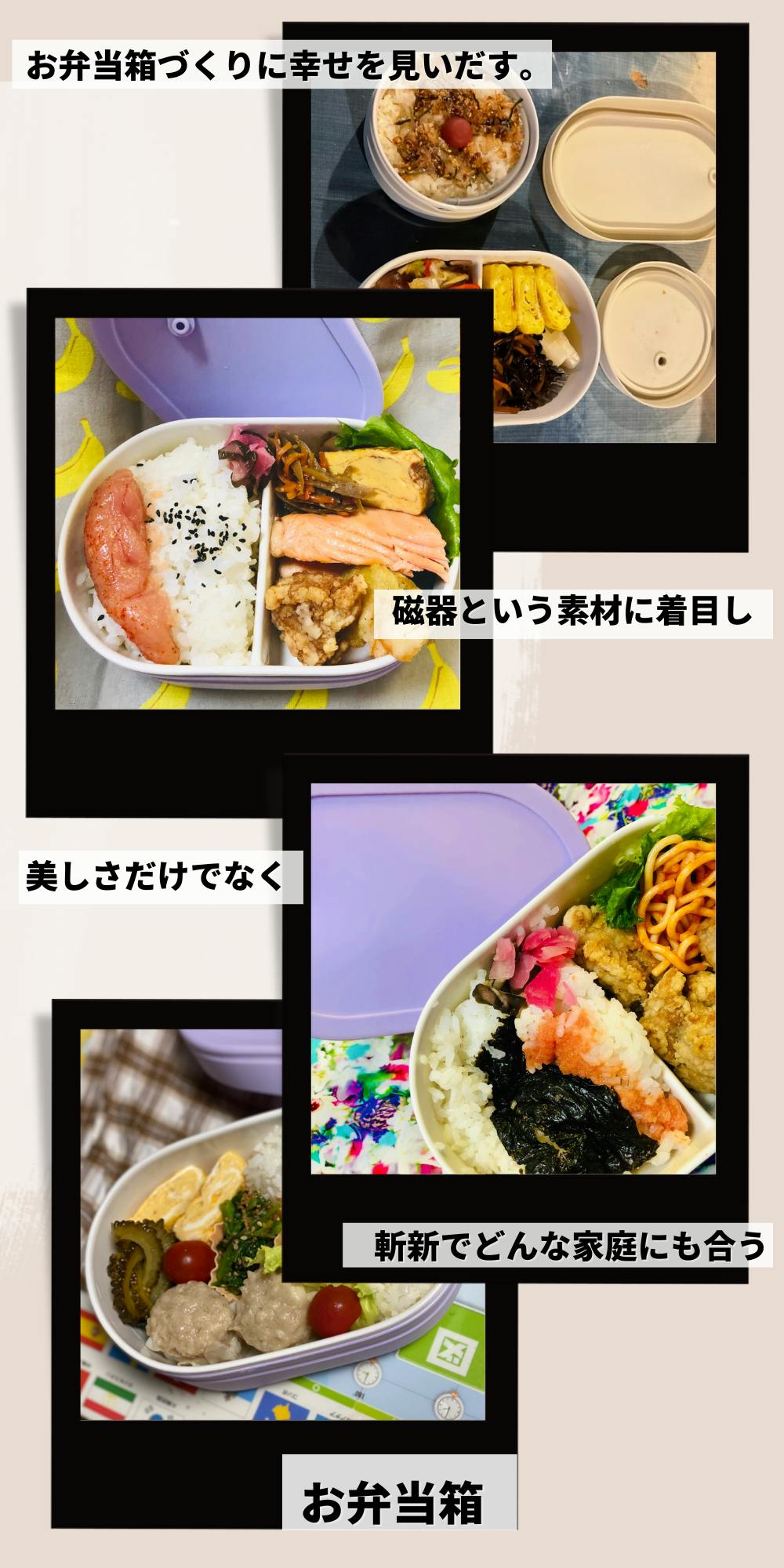 お好みのお弁当箱のサイズがなくて困ったことはございませんか?手元に置いておくのに最適なサイズ、料理を入れるのに最適なサイズ。サイズや容量を、ニーズや好みに合わせてミックスして使う。Ohayo Bentoは、あなたの食事にぴったりなサイズに設計されています。 大きすぎず、小さすぎず、ちょうど良いサイズです。