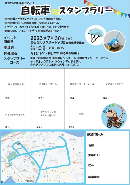 今回、夏休み期間中に子供たちに咲洲を自転車で回ってもらいます。