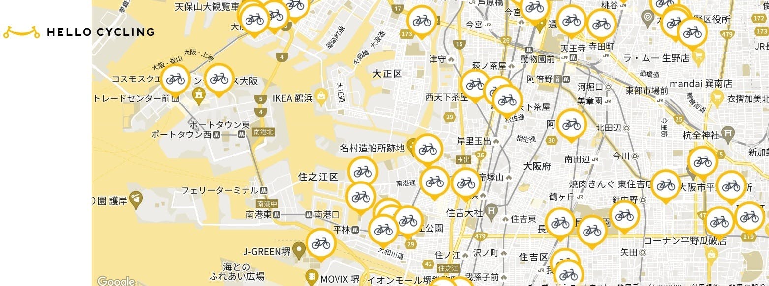 現在、住之江に12か所のシェアサイクルステーションがあります。