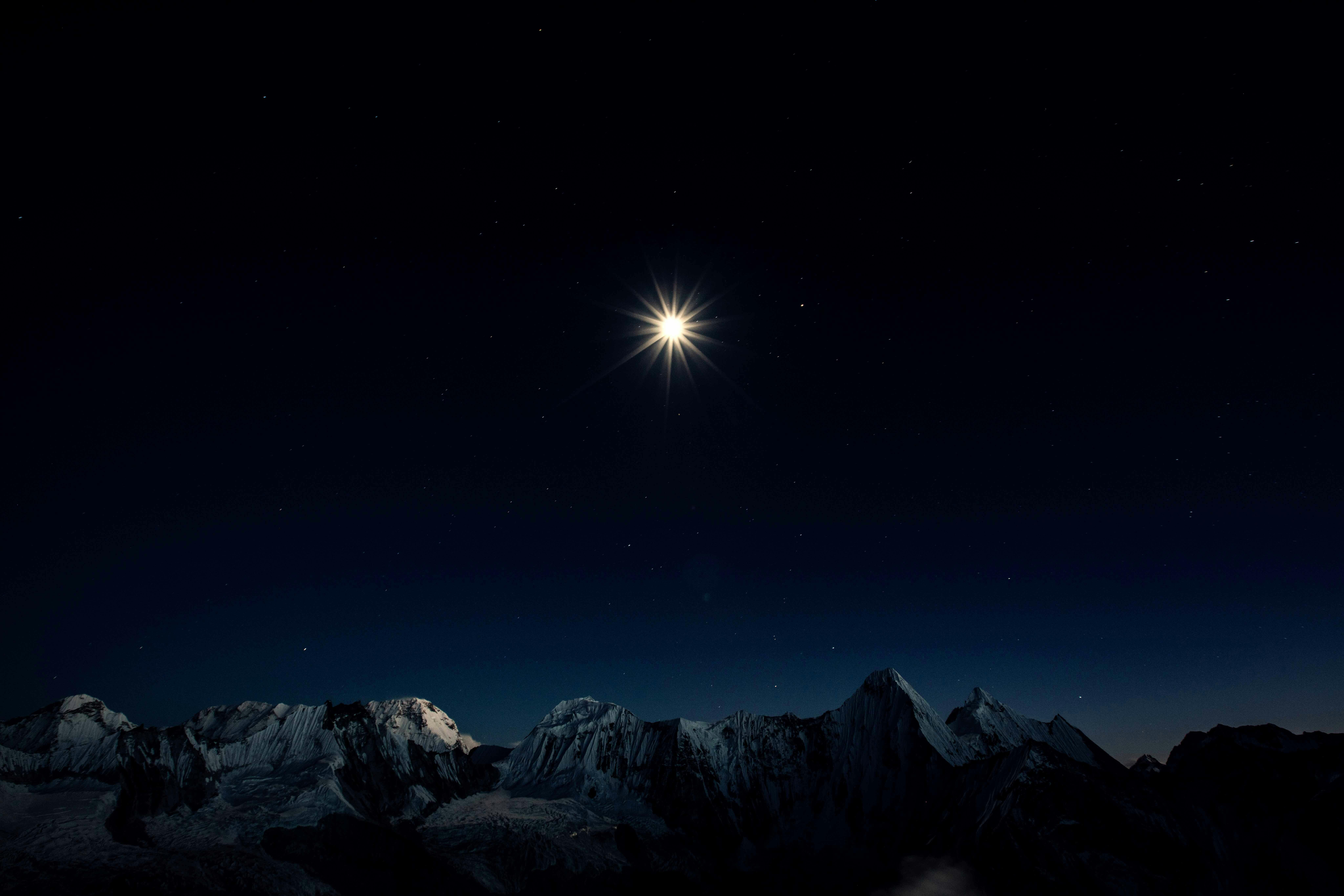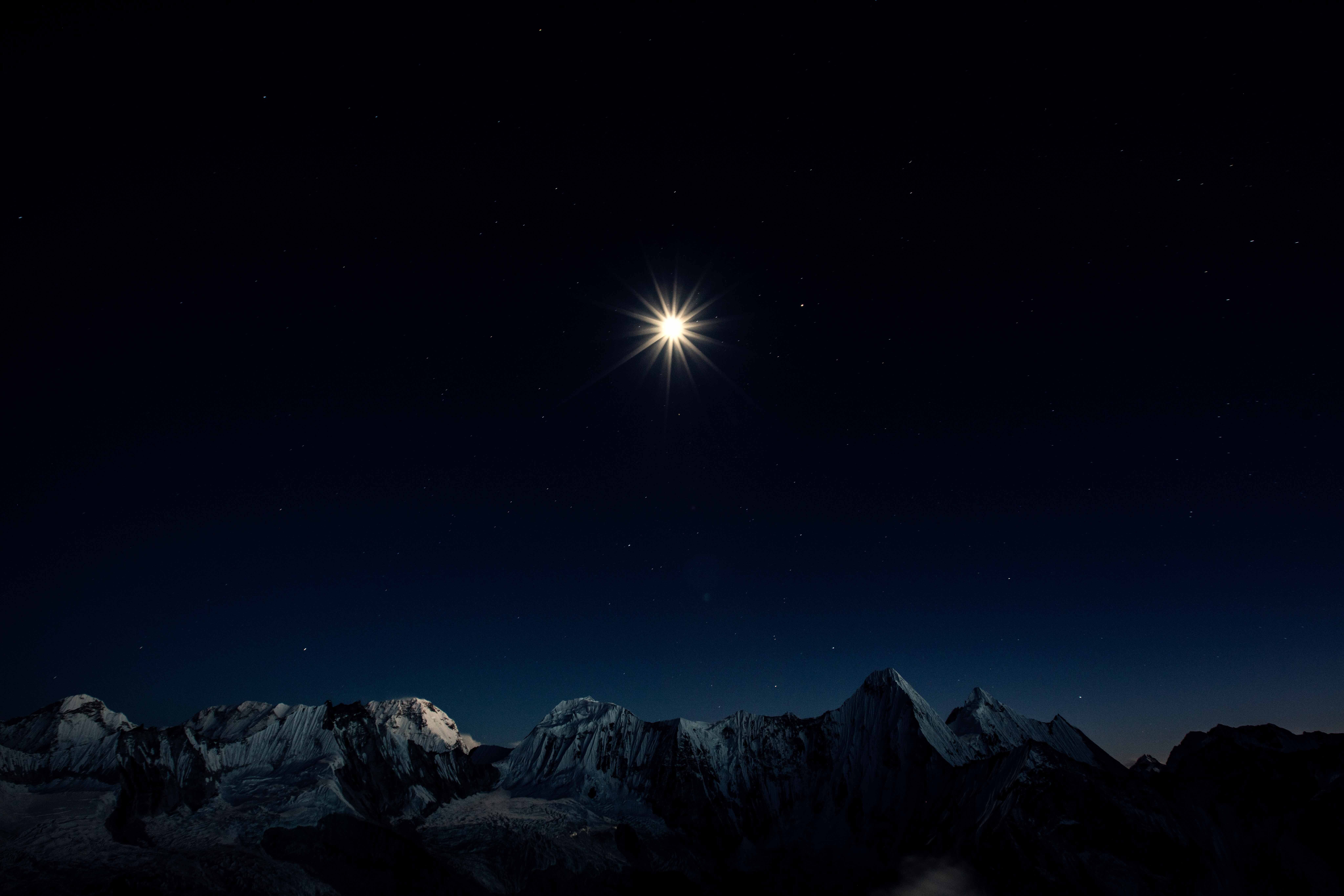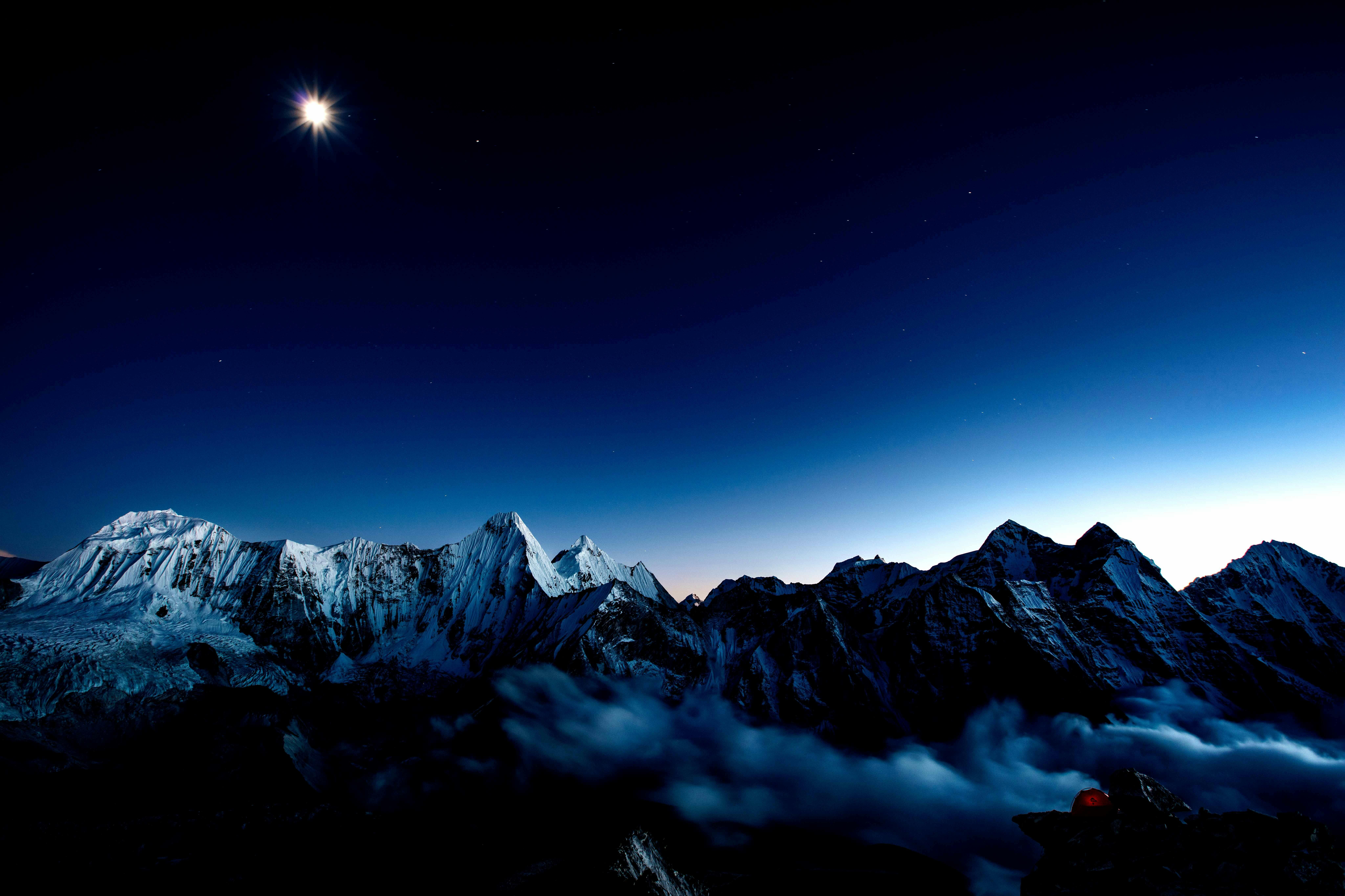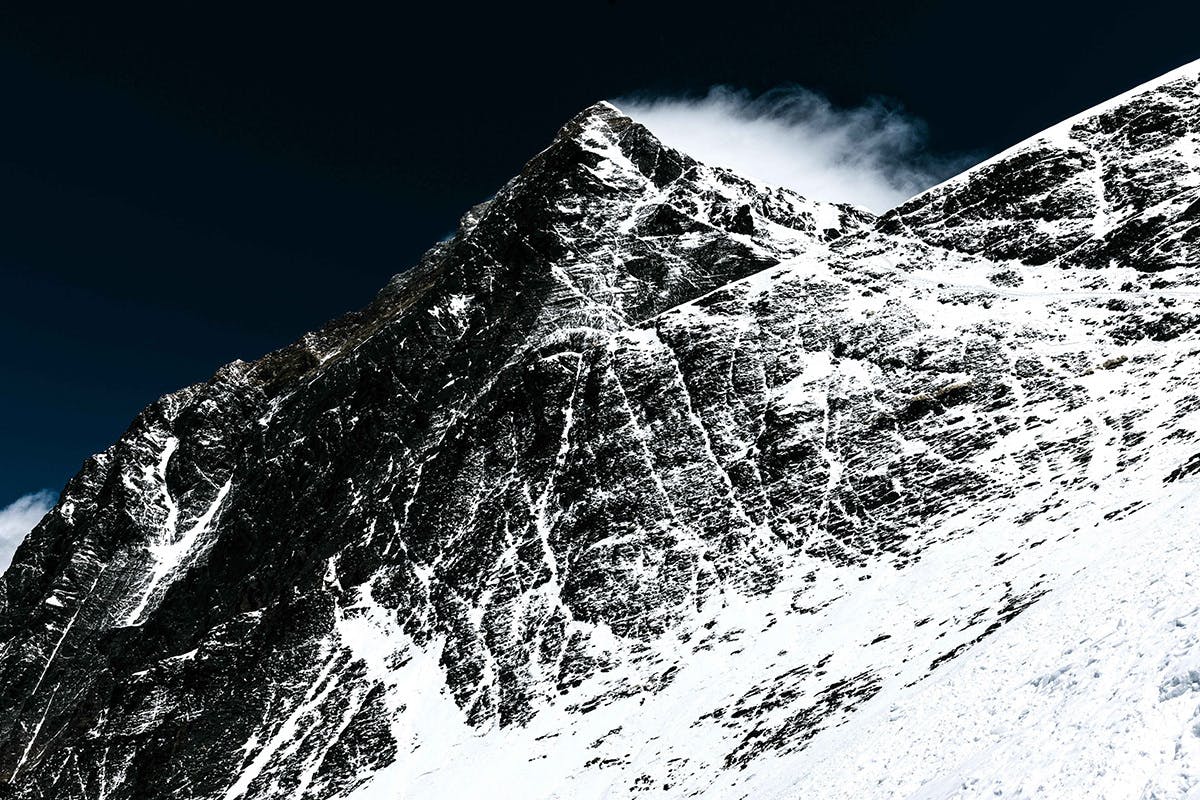 世界最高峰エベレストをとらえた1枚。標高7500mにて撮影しました。濃紺の空に突き刺さる黒いエベレストが美しい1枚。
