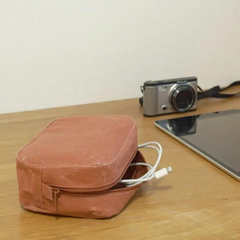 スクエアポーチM。画像のアイテムに写真がプリントされます。