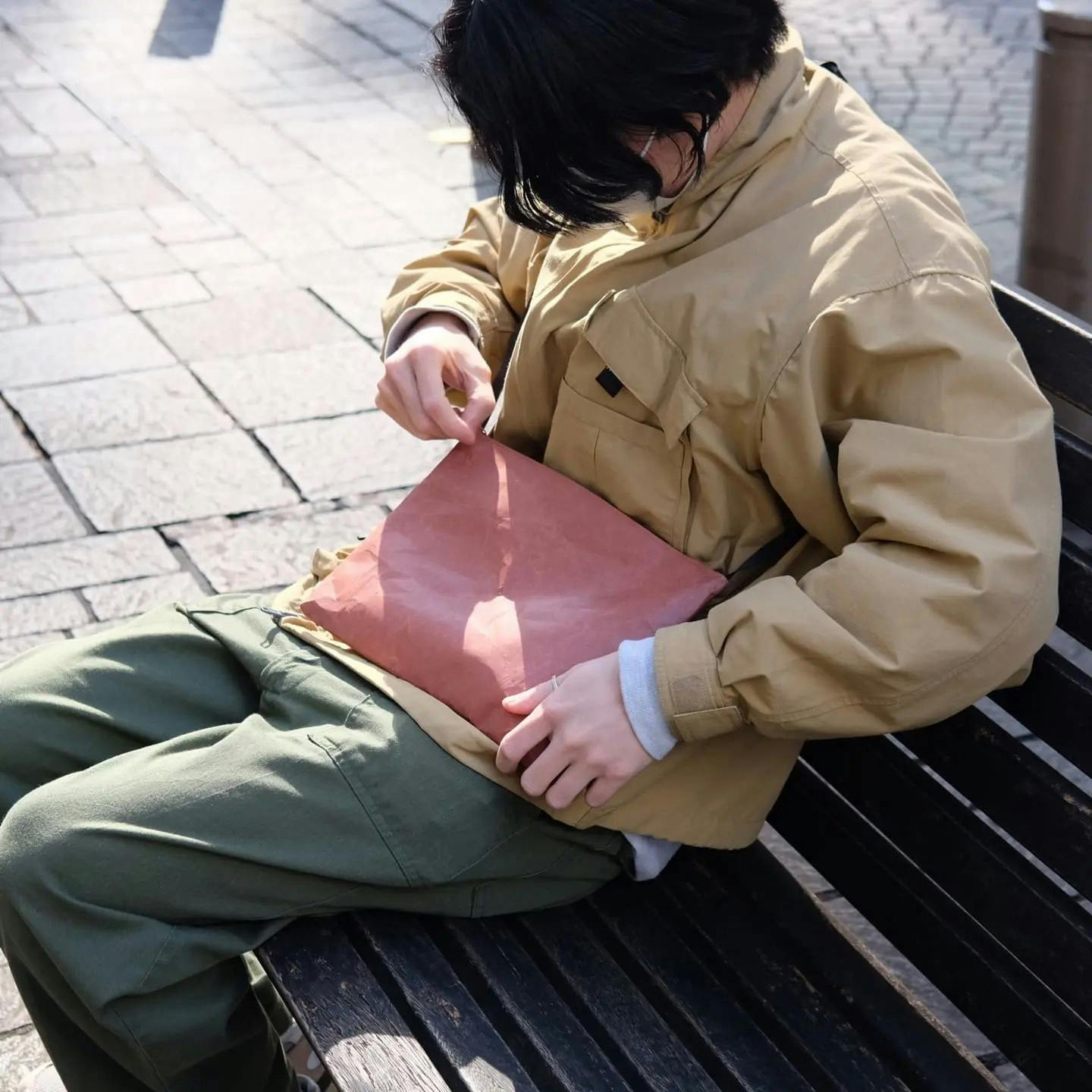 街歩きにも、ちょっとドレッシーな服装にも似合う、軽快なサコッシュ。最小限の荷物をコンパクトにまとめて、斜めがけバッグとして。開口部はジッパー付きで、内ポケットもあり、スマートフォンやお財布、ハンカチなどいつも手元に置きたいものをコンパクトにまとめます。ストラップは内側で結んで自由に長さ調節ができますので、お使いになる方、使うシーンに合わせて持ち方を選ぶことができます。年齢や性別を超えて気楽に使える小型バッグです。SIWAの商品だから手触りが優しく、耐久性があって、もちろん水にも強い商品になります。(大きさ:H215×W285×D15 mm)