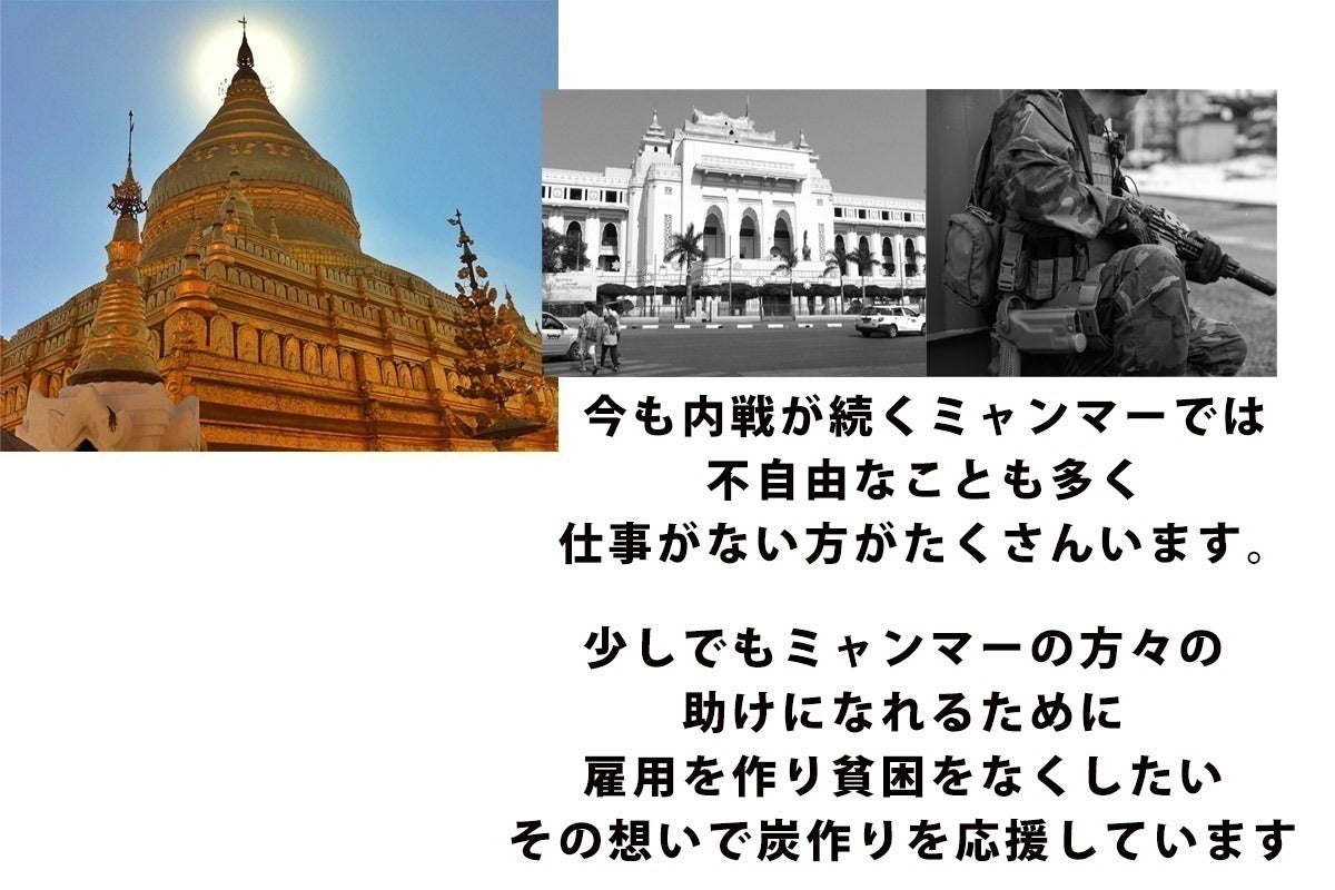 内戦が続くミャンマーでの仕事を応援するミャンマー製の炭