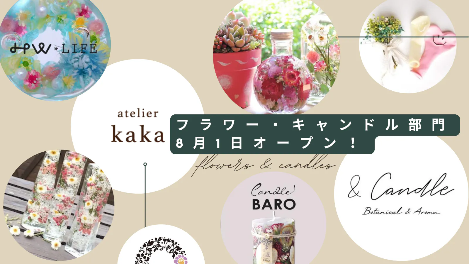 7月のオープン時点ではまず「フラワー部門」「アロマ・キャンドル部門」の正式公開となりますが、同時に「アクセサリー」「木工」「レザー」「布小物・衣服」「ガラス細工」「ニット・編み物」「イベント・教室運営」などなど他の部門もベータ版公開予定です。