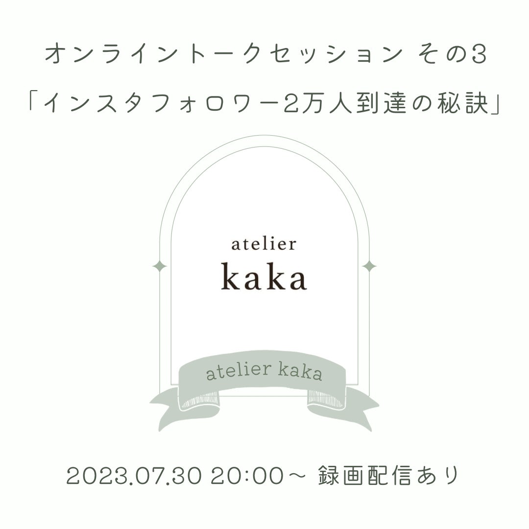 7/30のオンライントークセッションの内容ご紹介その3です。今日ご紹介するのはatelier kakaさん。kakaさんはもともとハーバリウムの制作などをされていましたが、数年前にキャンドル作家の道を歩み始められました。そしてキャンドルの溶けやすい夏でもキャンドル作家さんがイベントに出られるように、今話題の「キャンドルすくい」を広められるなど、イベントでも大人気の作家さんです。インスタグラムもぐんぐん伸び、あっという間にフォロワー2万人。今回は作家さんの悩みの種とも言えるインスタ運用についてお話いただきます。楽しみにしていてくださいね!