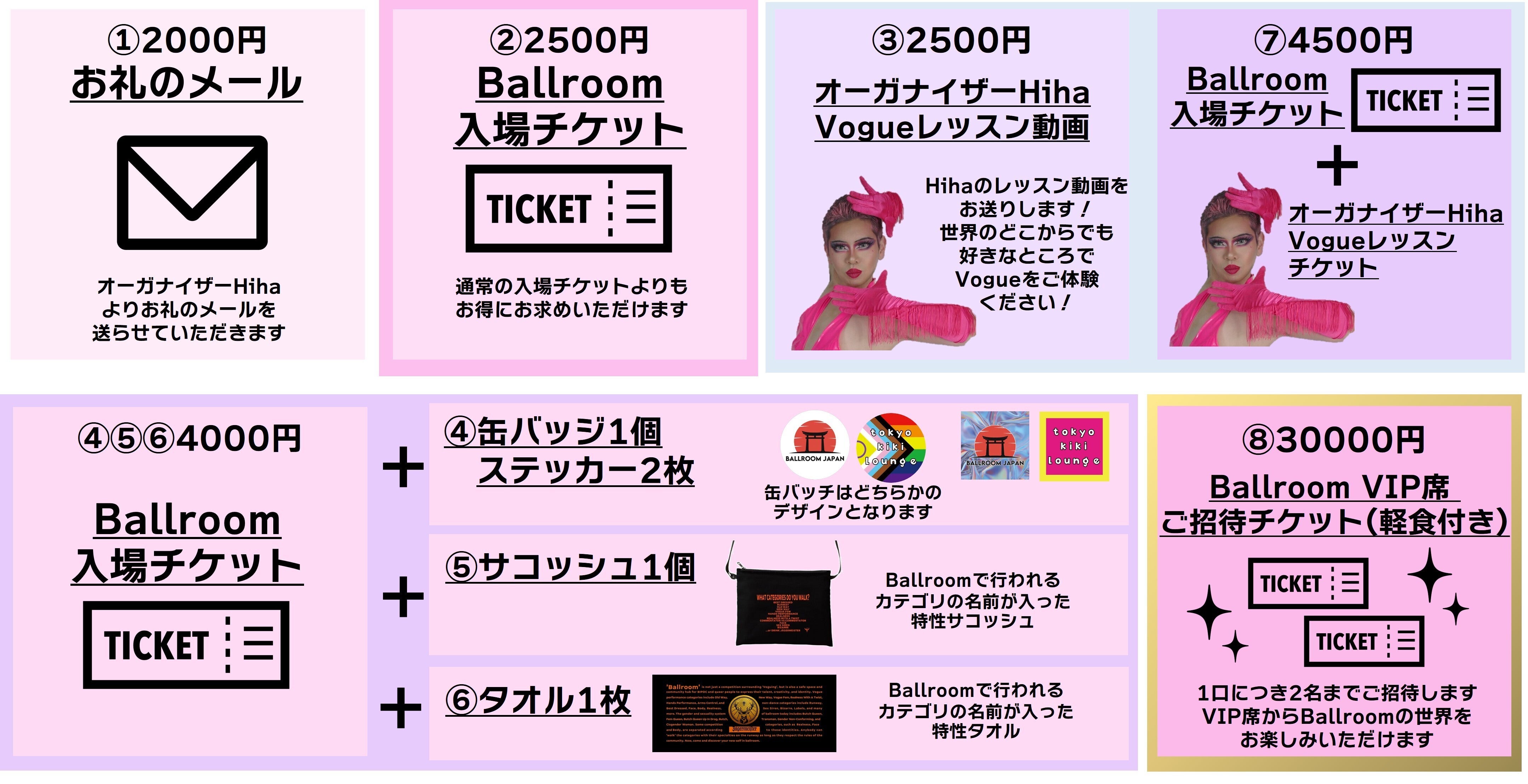 ⑦Ballroom入場チケット+オーガナイザーHihaのVogueレッスン動画