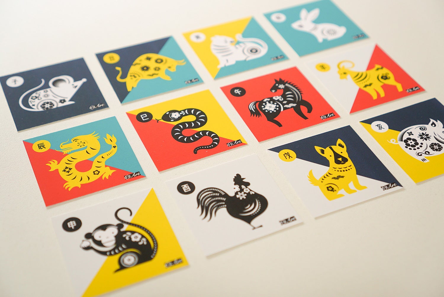 ラッキーアイテムをペタッと!ビックリマンシールくらい(5×5センチ)のサイズで、十干と十二支のシールをデザインしました。自分のラッキーアイテムを手帳に貼ったり、鑑定をした方へのプレゼントにもぜひご活用ください。