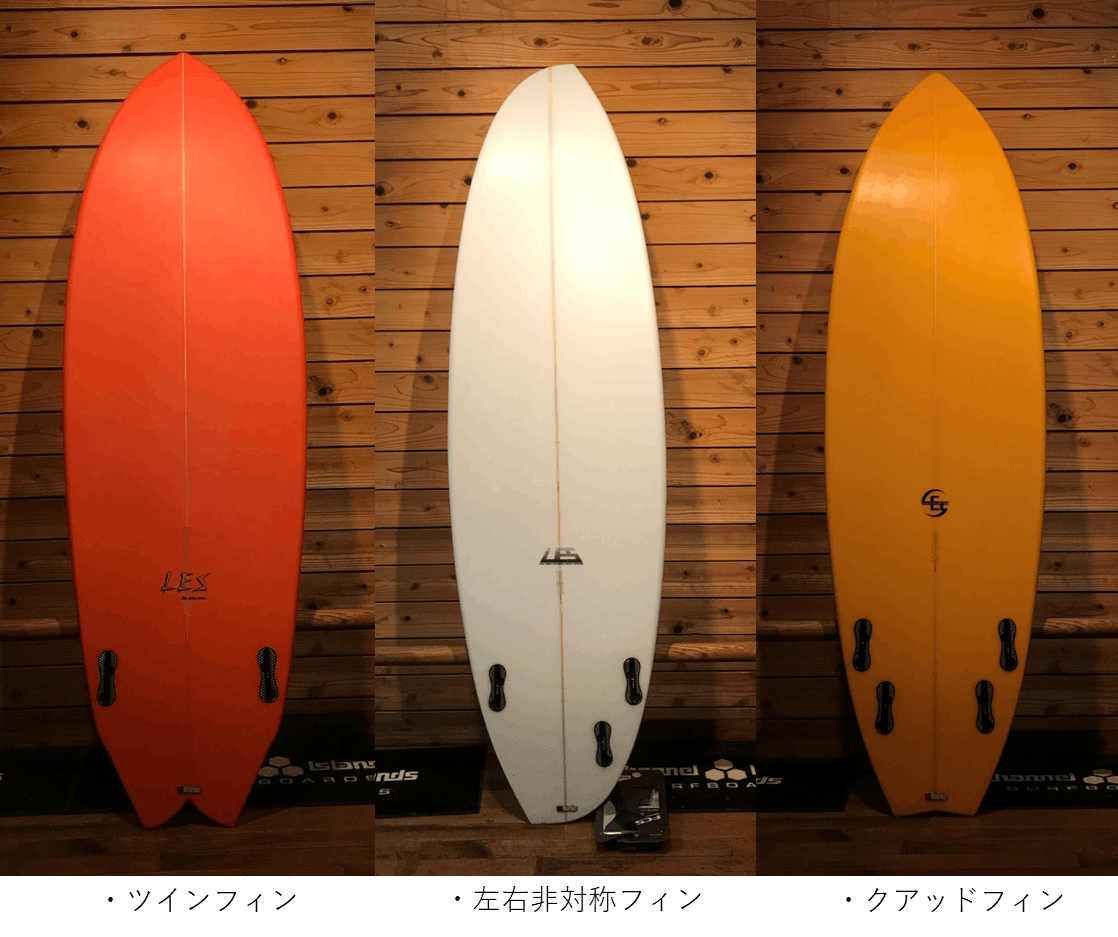 クアッドフィンは、フロントサイドではスピードを付けやすいですが、ターンの際、リアフィン(サイドフィンの後ろに位置するフィン)が抵抗になりやや動きが重くなります。バックサイドはリアフィンが抵抗になりターンしやすく、加速もさせやすいです。