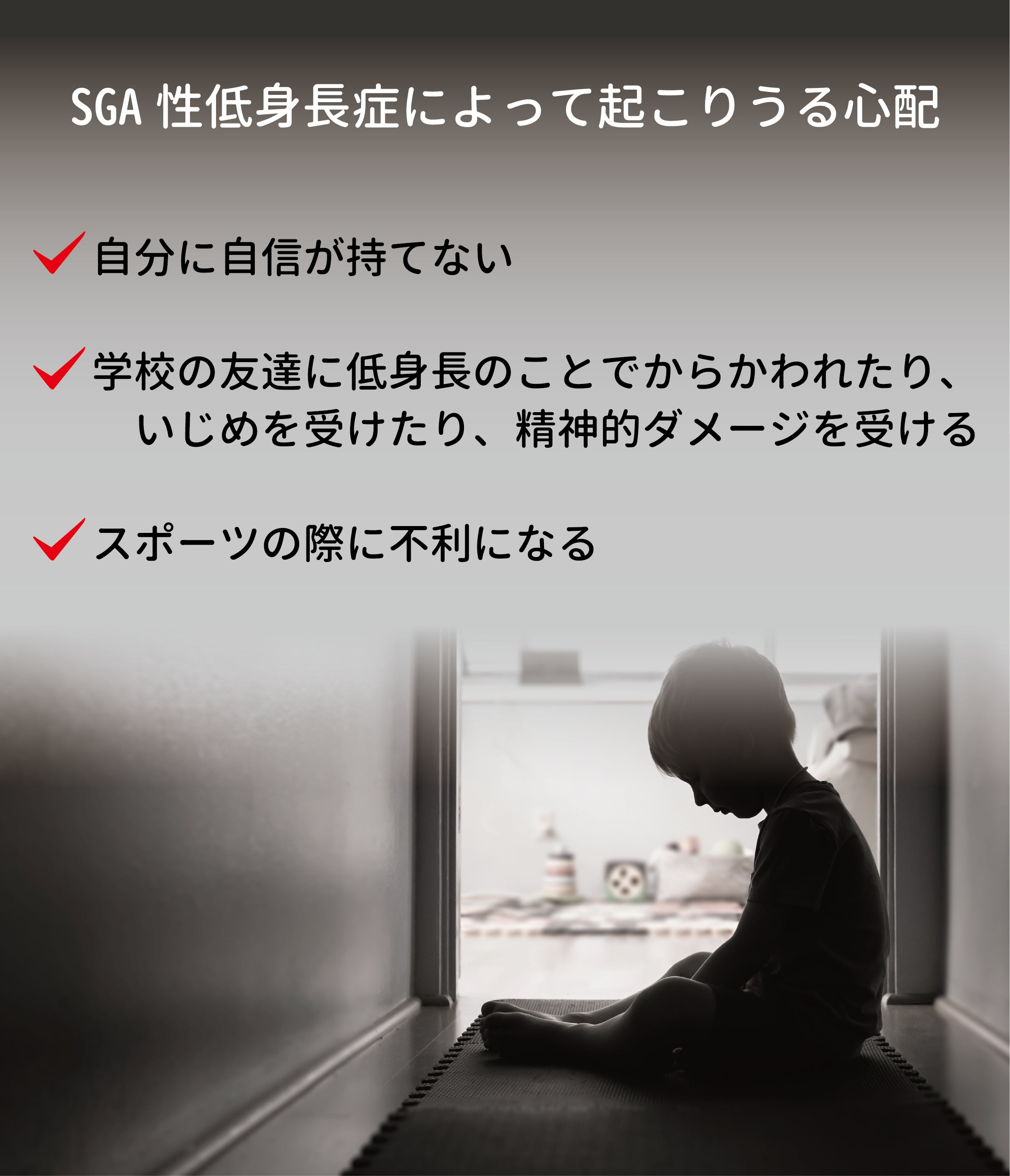 極端に背が低いことによって、子どもの自信喪失や、からかいの対象につながってしまうかもしれません。