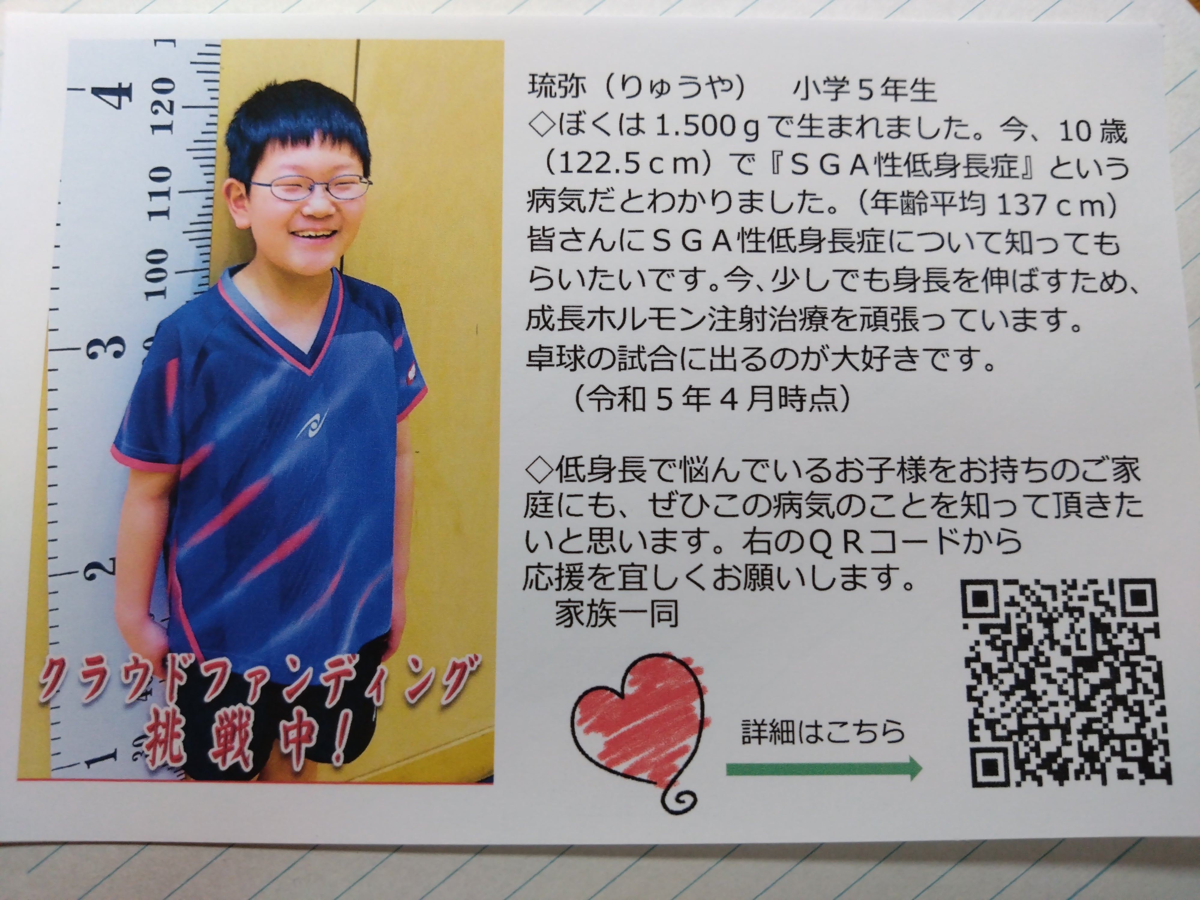 この度は、息子の低身長の病気の事で多大なご支援いただきありがとうございます。