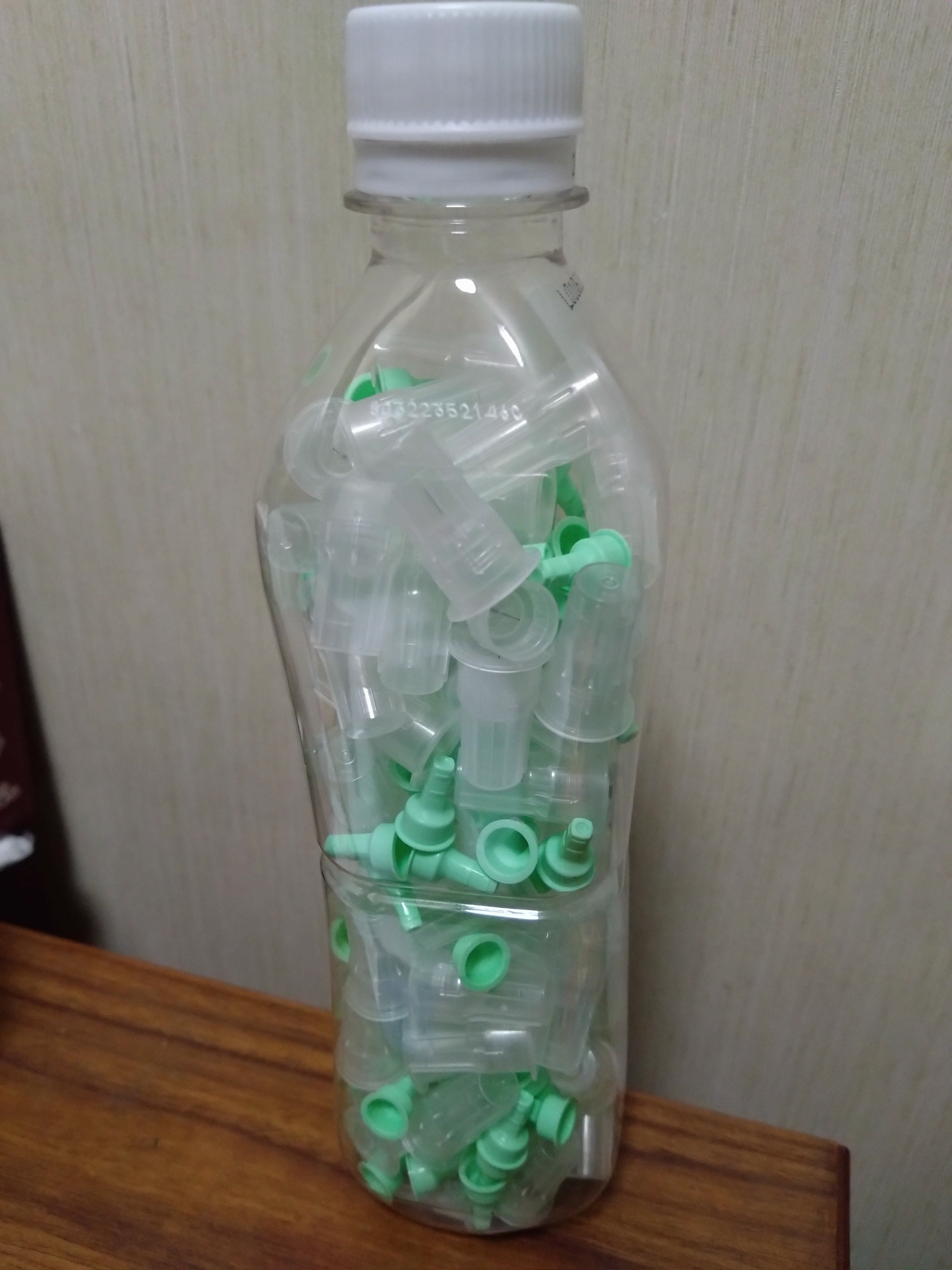 写真は注射針&キャップの医療廃棄物となります。