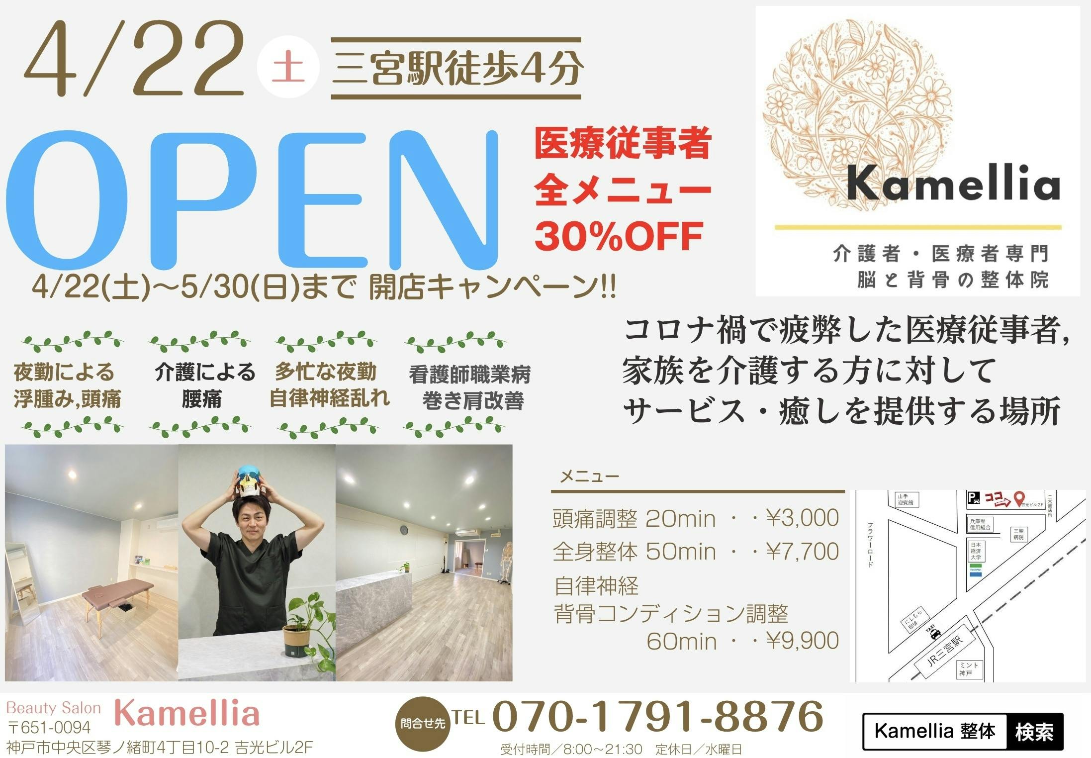 自身で介護者・医療者専門の整体院 Kamellia 神戸院を一人で立ち上げ活動しています。