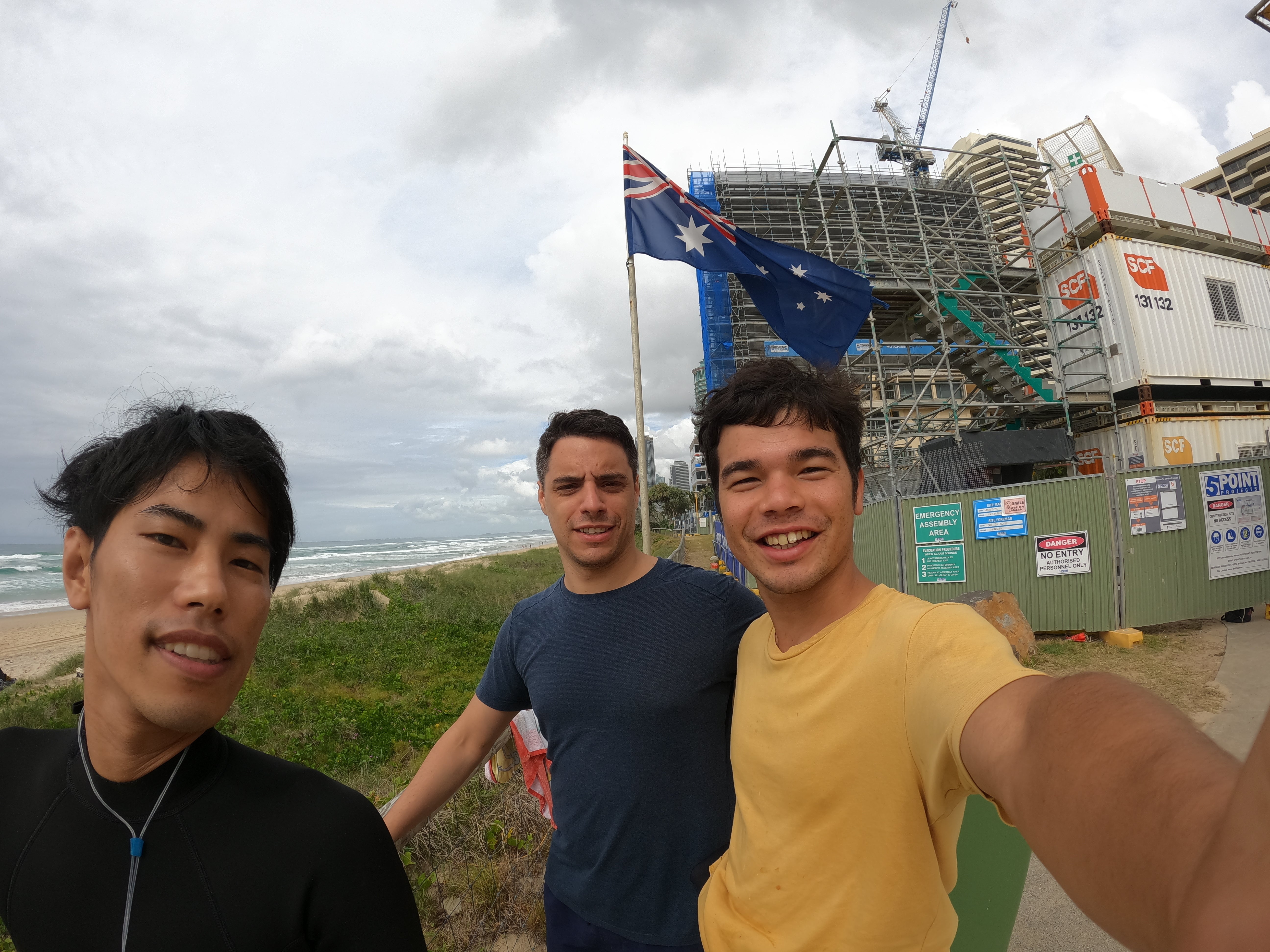 ゴールドコーストでは、サーフィンやアルバイトをして過ごしています。黄色いテーシャツを着ているのが自分です。
