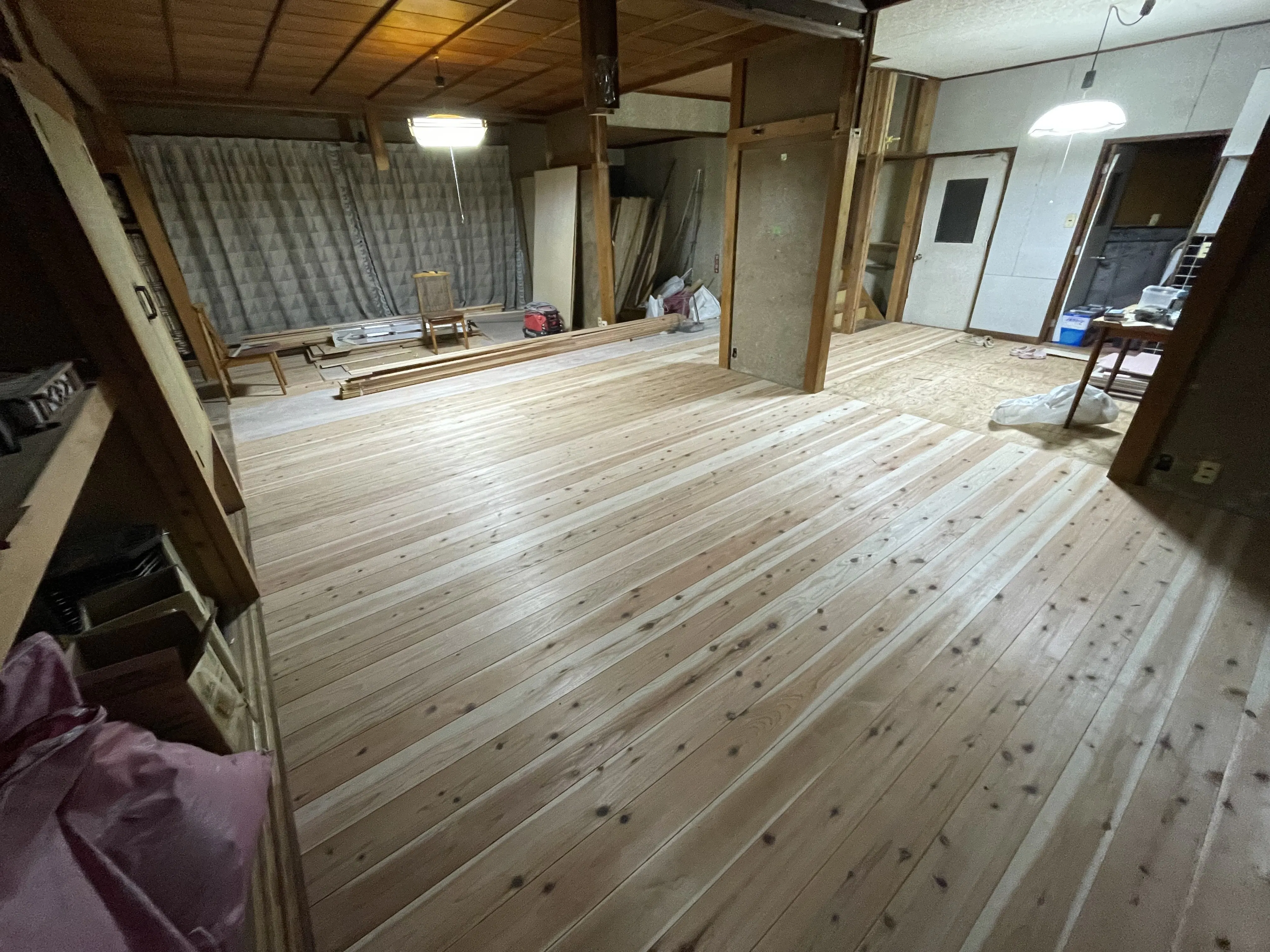 2024/01/14 10:24床張りイベントで地域の方にもご協力頂いた一階フローリングを職人さんにお手伝いしてもらい完成できました!!今回の活動を通して職人さんって本当な偉大だと痛感しています。以前の私は少なからず、お客の立場でお金を払うからやってもらって当たり前。プロだから簡単にできるでしょ…って考えていました。しかし、実際に自分たちでも取り組む中で、本当に多く技術と知識を現場毎に応用する知恵を目の当たりにしてきました。家が建つのも、リフォームするのも当たり前じゃない!!こうして日々現場で頑張っておられる全ての職人さんに感謝です!!まだまだ手作業で初めて試みる事も山積みですが、完成に向けて取り組んでいきますので、引き続き宜しくお願い致します!!キッチンスペースはフロアタイル張りに挑戦します! もっと見る