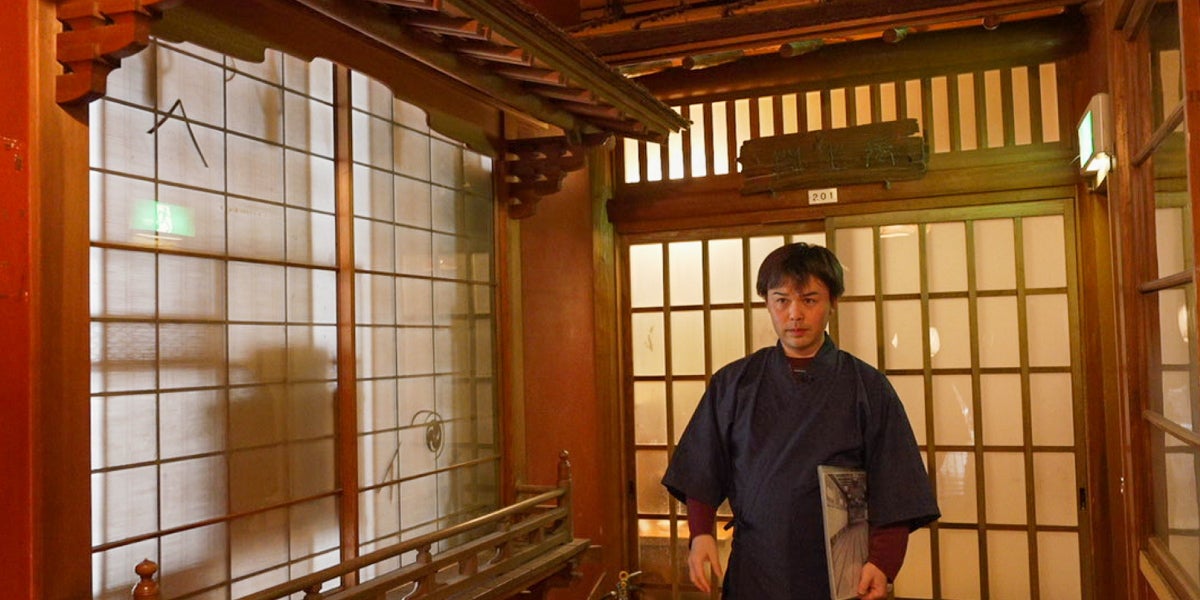 金具屋には昭和11年に建設された木造4階建ての客室棟「斉月楼」と建築面積200畳の木造「大広間」があり、文化庁の登録有形文化財に認定されています。現代では数少ない昭和の『擬洋風建築』とされ、さまざまな作品の資料や舞台としても使われてきました。