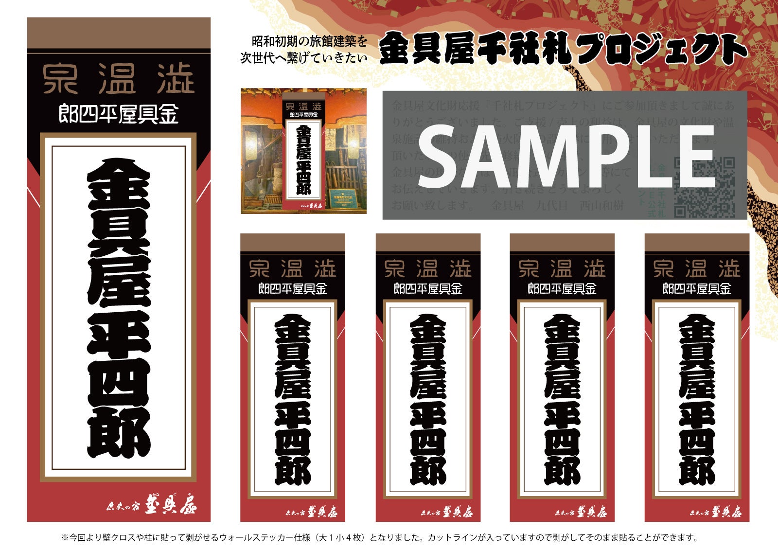 ・1枚を金具屋館内に1年間貼付(リターン金額によって貼付するサイズが異なります)
