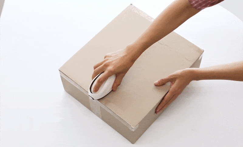 CatnailはPCで使うマウスのように軽く手を添え、段ボールに押し当ててボタンをクリックして引くだけ。ほとんど力を使いません手にピッタリとフィットする形状で、長時間の作業も快適です。