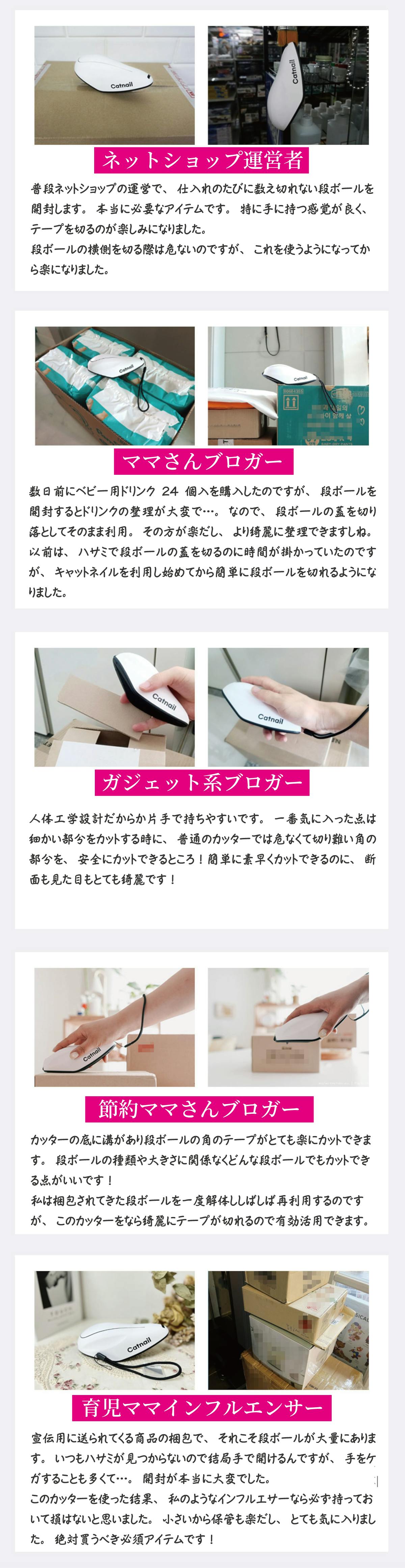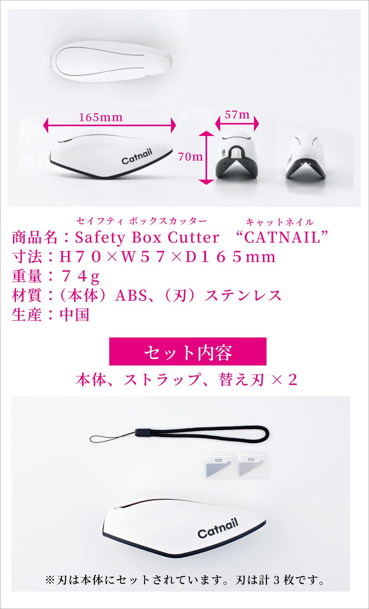 Catnail(キャットネイル)段ボールの開封作業を安全かつ短時間で行える段ボール専用セイフティーカッターです。