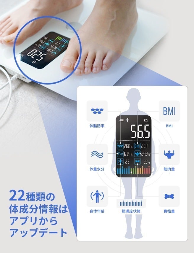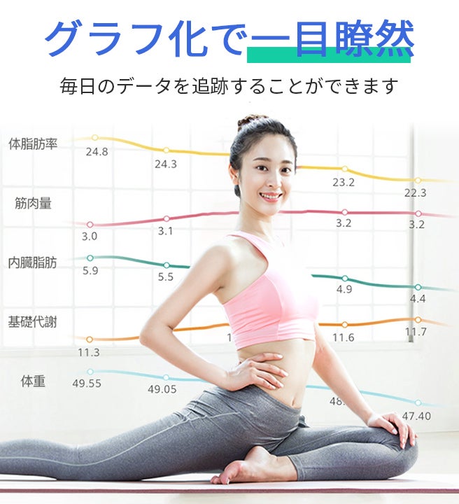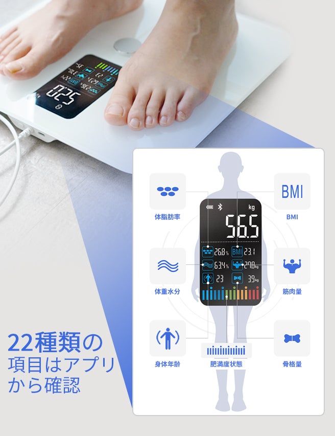 今までの体重計は、体重だけを表示し、そのほかの体の状態はよく把握できない製品が多々ありました。