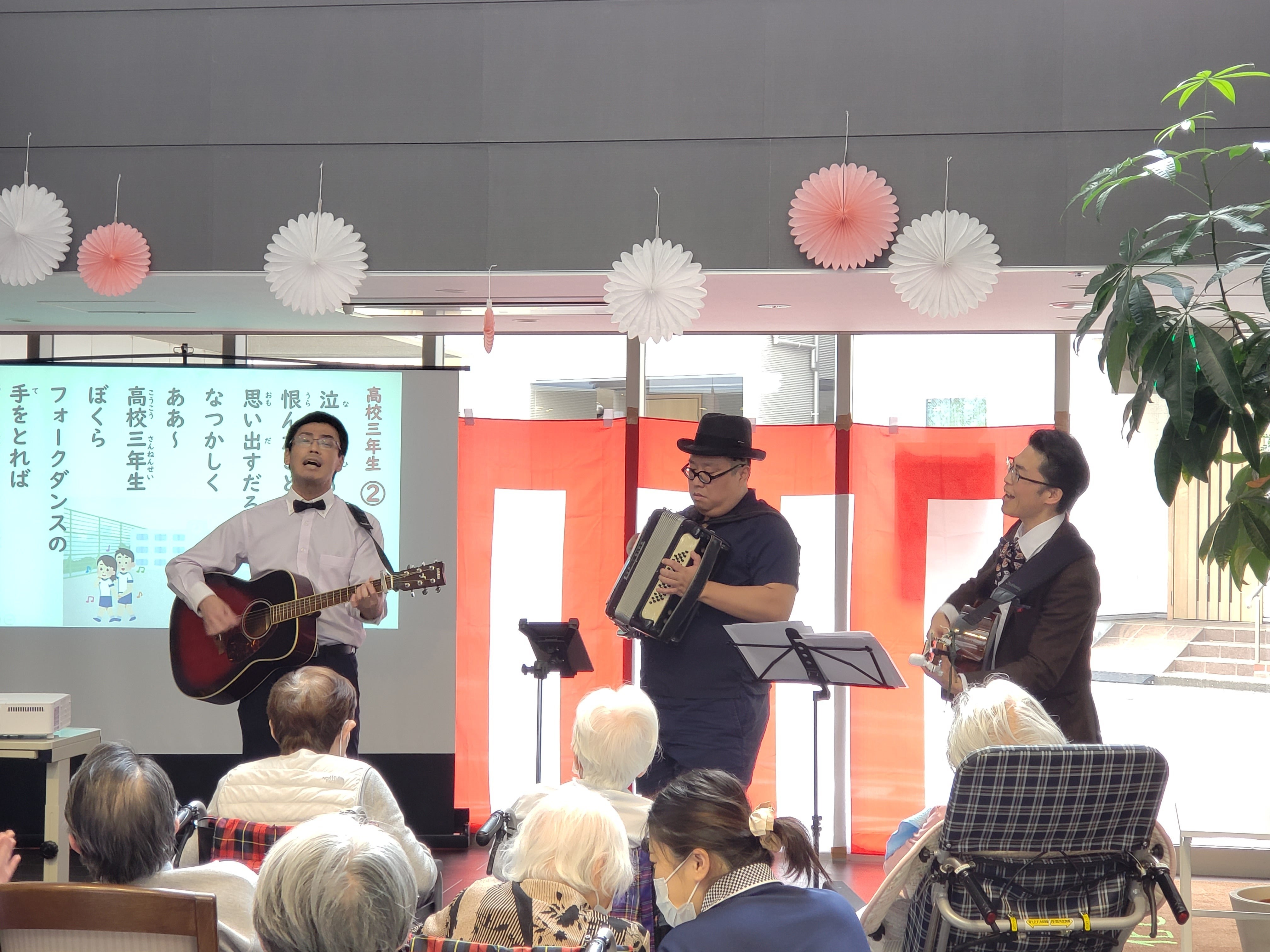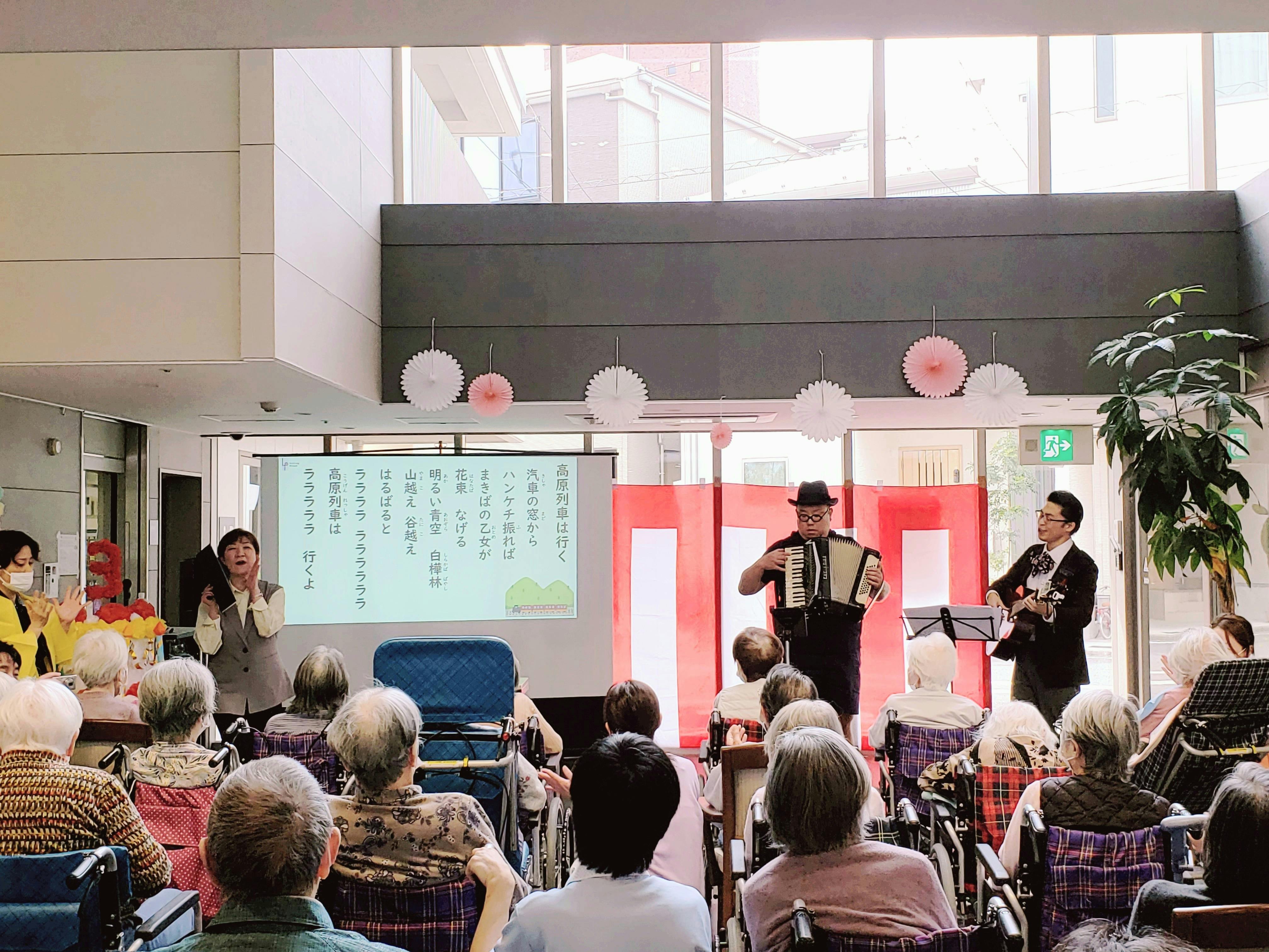 4月2日に開催させていただいた、足立区の特別養護老人ホーム花ざかりでのレクリエーションコンサートのご報告、第2弾です(^o^)v