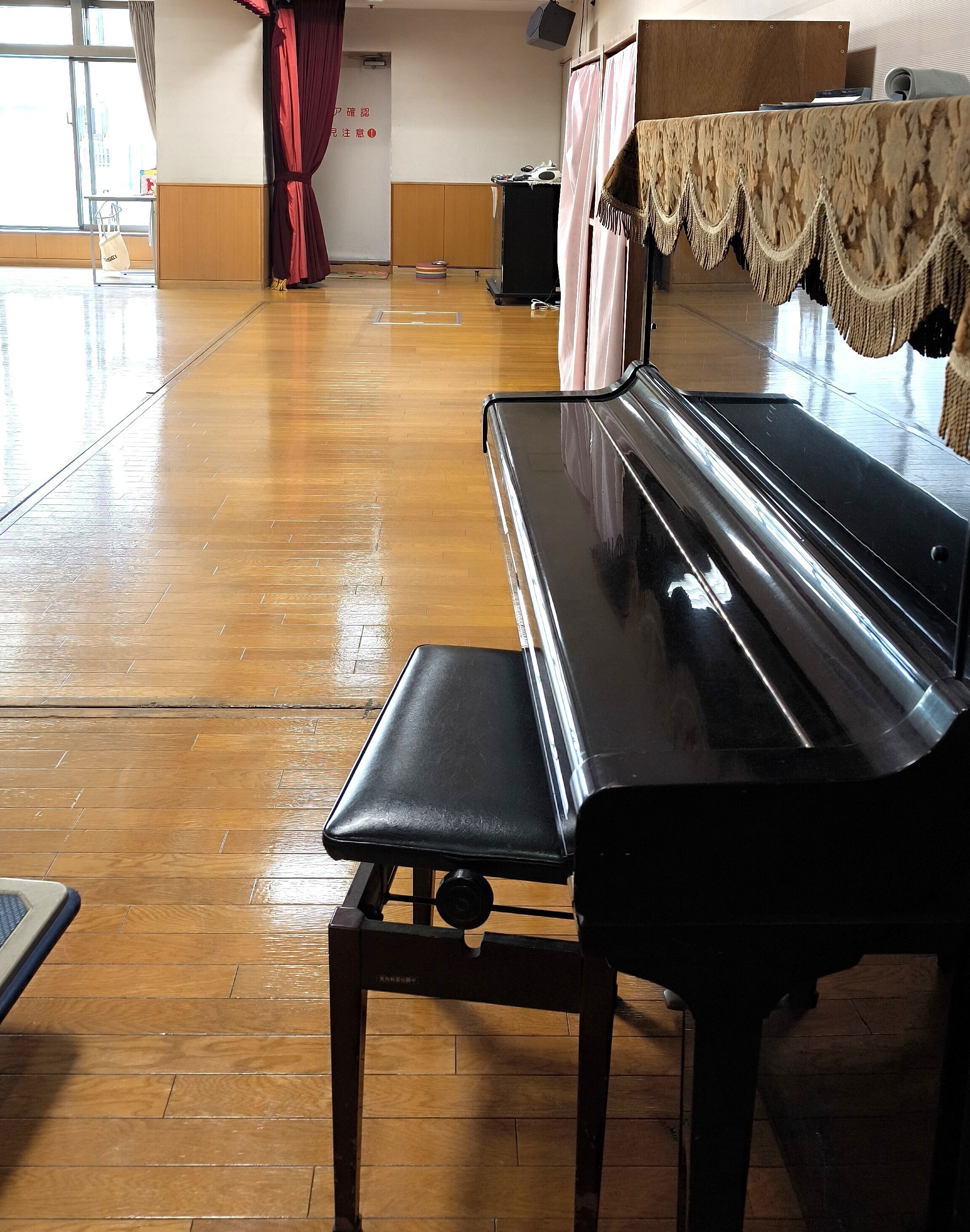 1階の受付前のスペースには、ピアノやステージ(せり上がるらしい…)、スクリーンなどが完備されていてビックリ!以前はこのスペースでピアノ演奏ボランティアなどが行われていたそうですが、コロナ以降、イベントを開催したくてもなかなかできずにいたとのこと。
