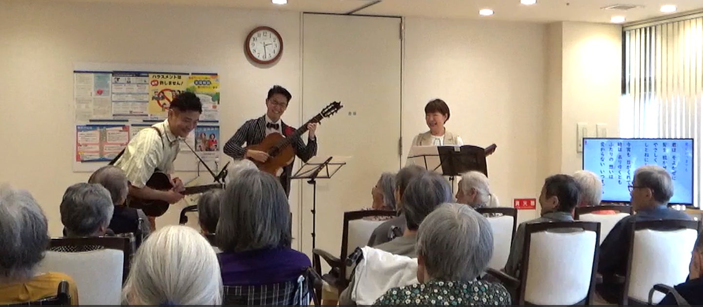 「皆さんの反応が素晴らしくて我々スタッフも感激しました」と、感嘆のお言葉をいただきました。演奏中も施設長さんをはじめ、スタッフの方々がご入居者の皆さまの様子を写真に収めたり、一緒に歌ってくださったり。おひとりおひとりへの気遣いやあたたかい寄り添いに、こちらも感激しておりました。重松施設長のお言葉にも背中を押していただき、感謝の気持ちでいっぱいです♪こちらの施設でコンサートを開催させていただけたご縁を心から有り難いと感じました。ありがとうございました!