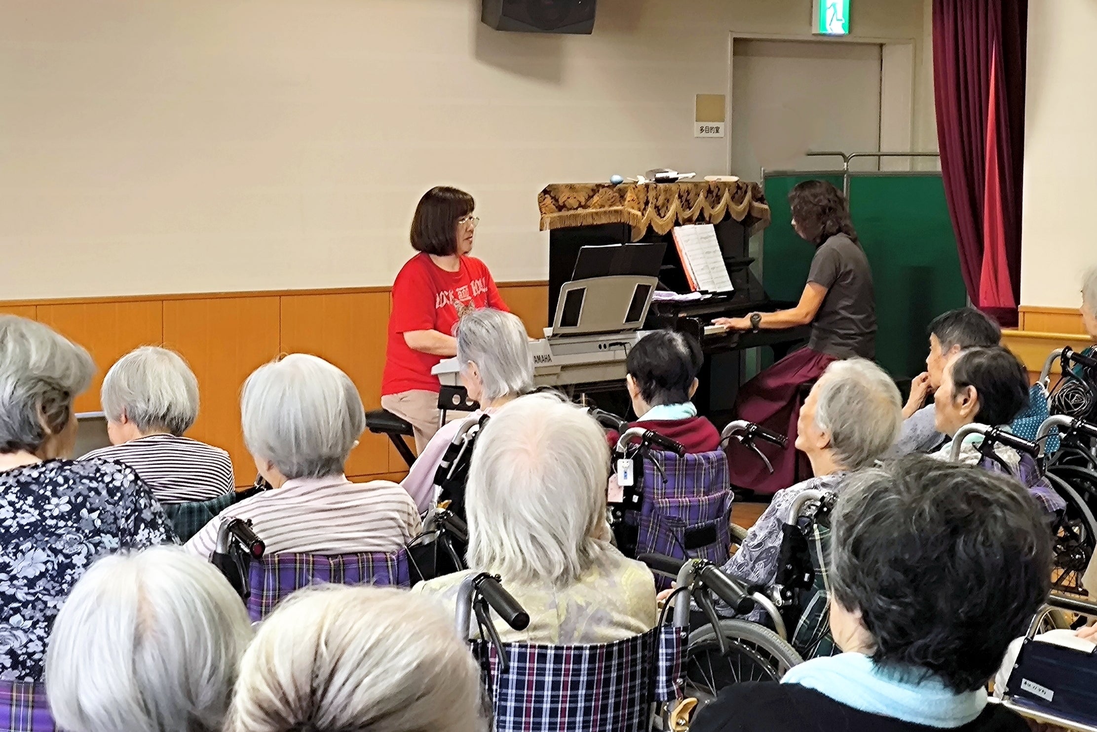 お年寄りの皆さんの笑顔と期待に包まれて、コンサートがスタート。