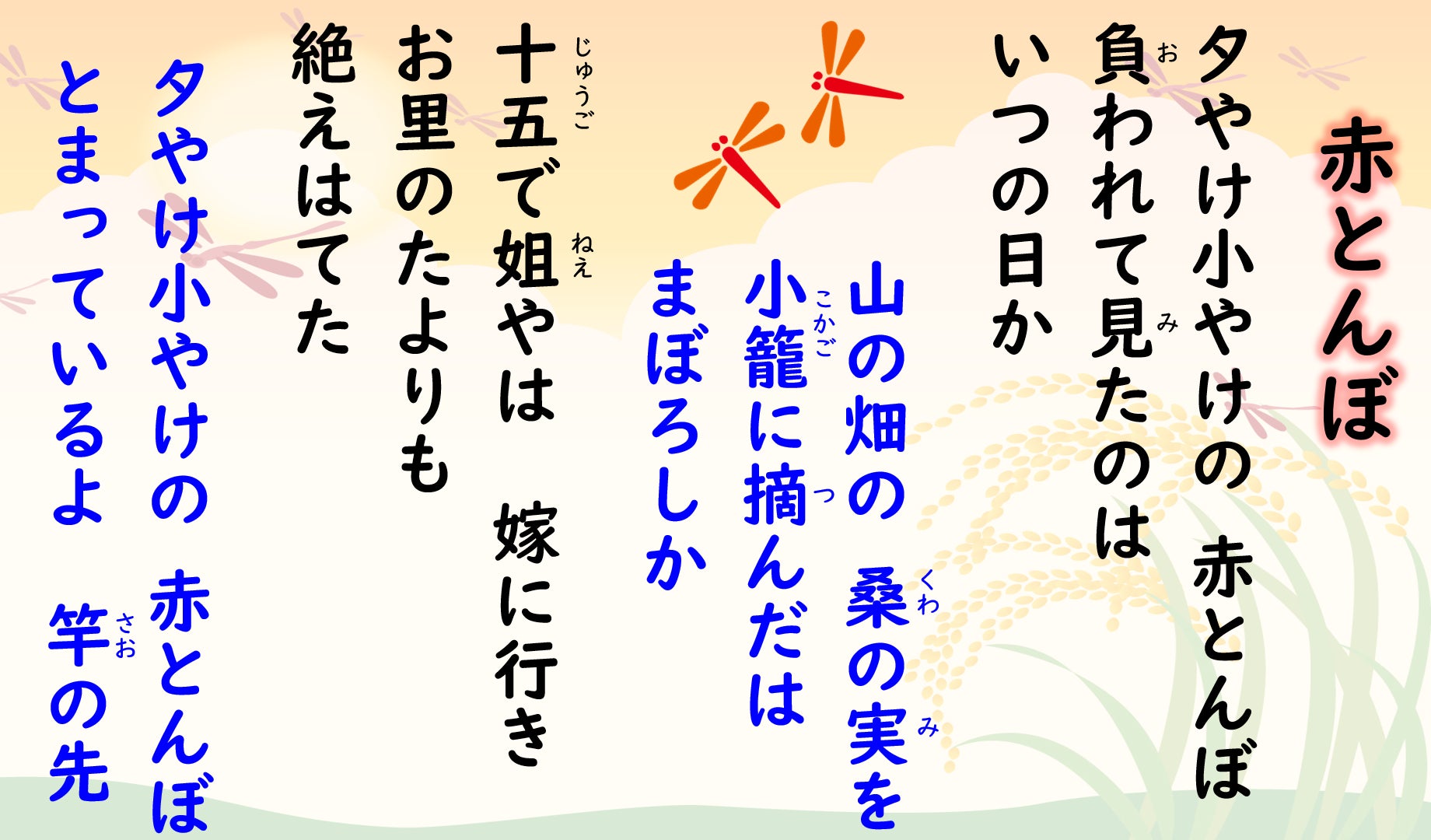 秋を感じる『赤とんぼ』、そしてラストの定番『ふるさと』。