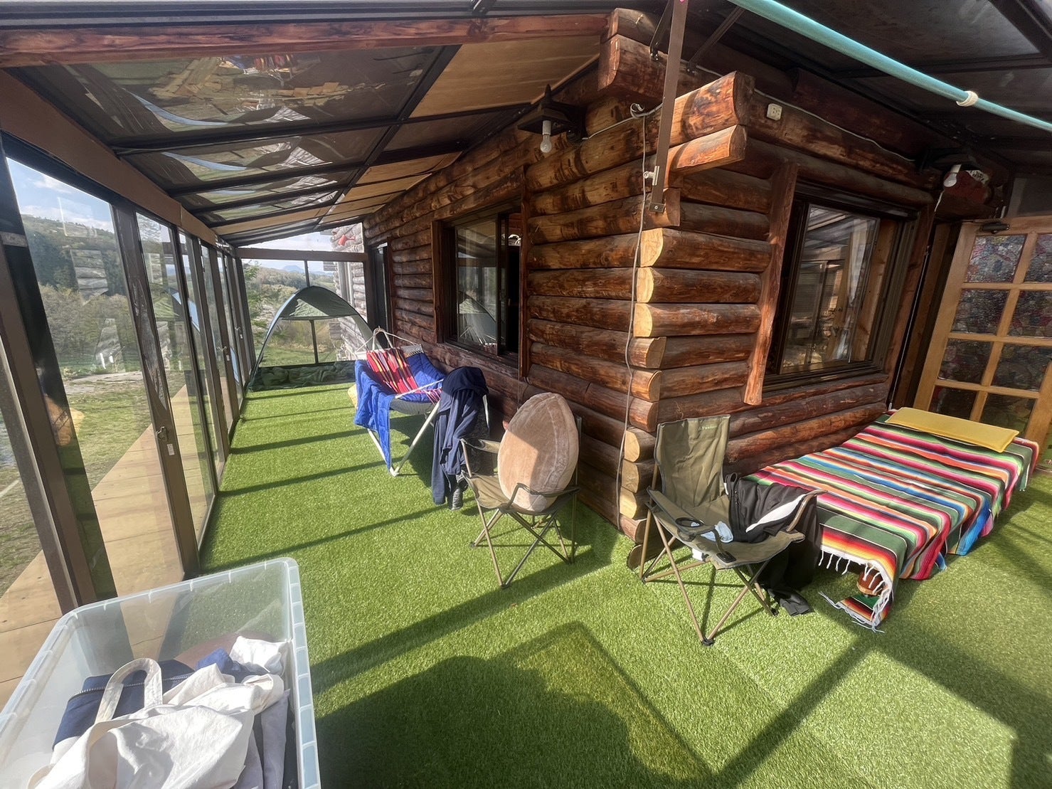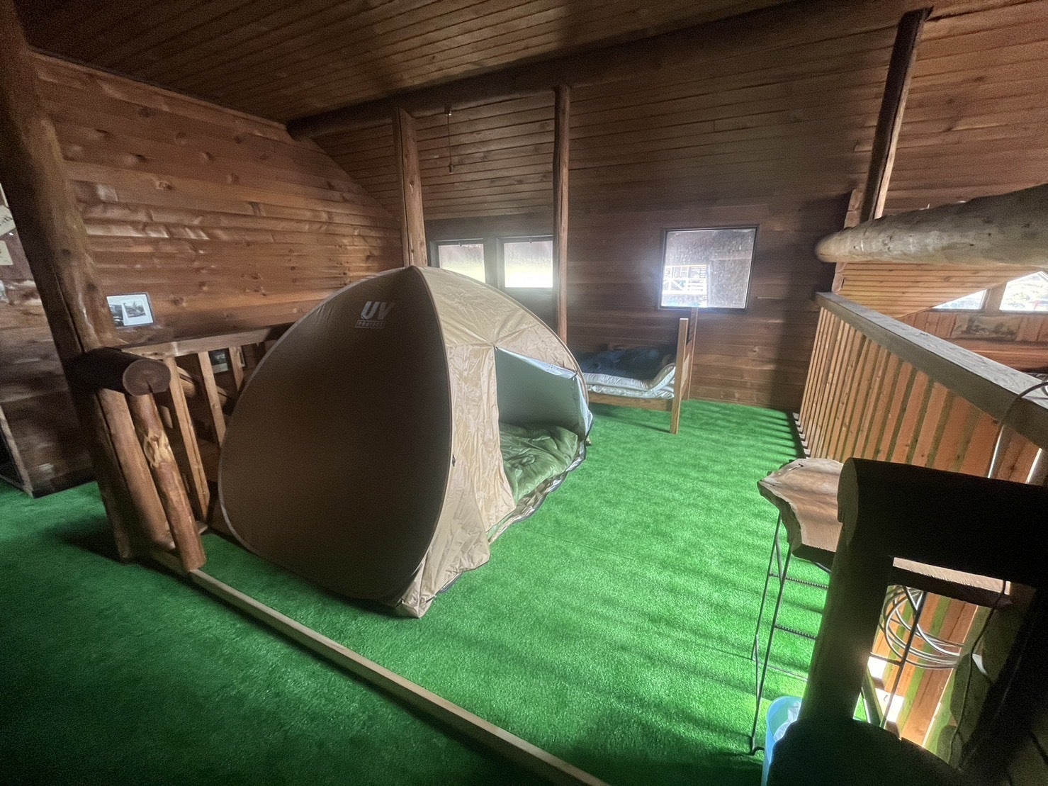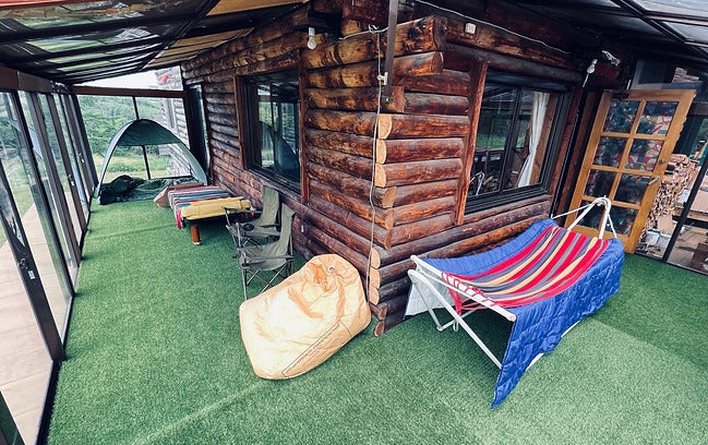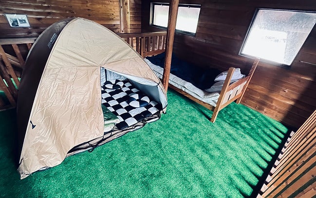 すべてのお部屋にて人工芝を張っておりますので、寝袋を敷いてお泊り戴くことが可能です。