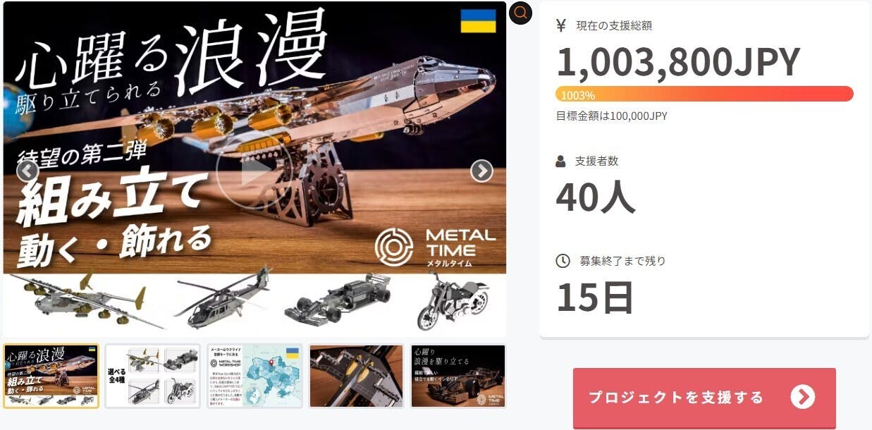 プロジェクト開始から3週間ほど経過し、ついに支援総額が100万円を超えました。