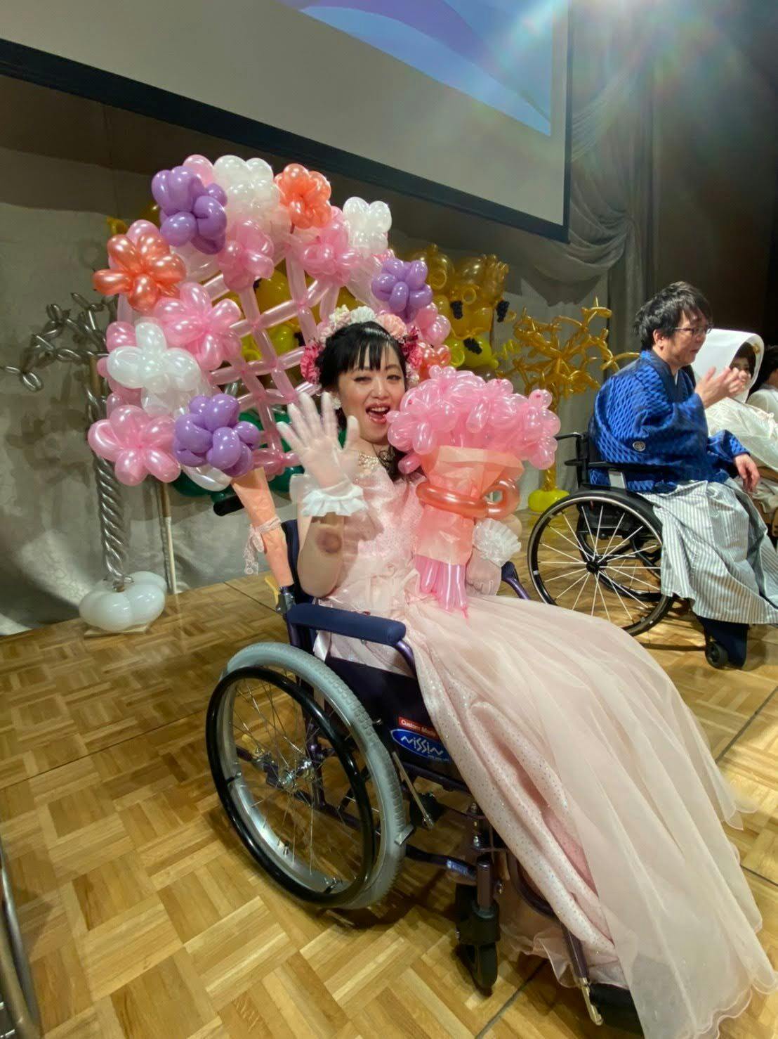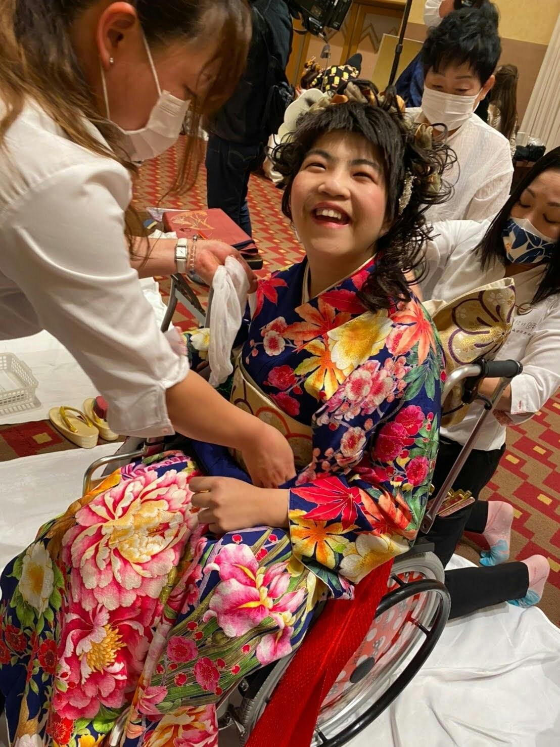 この一見関連の無さそうな2つを福祉車いす着付け師によって見事にコラボさせています。