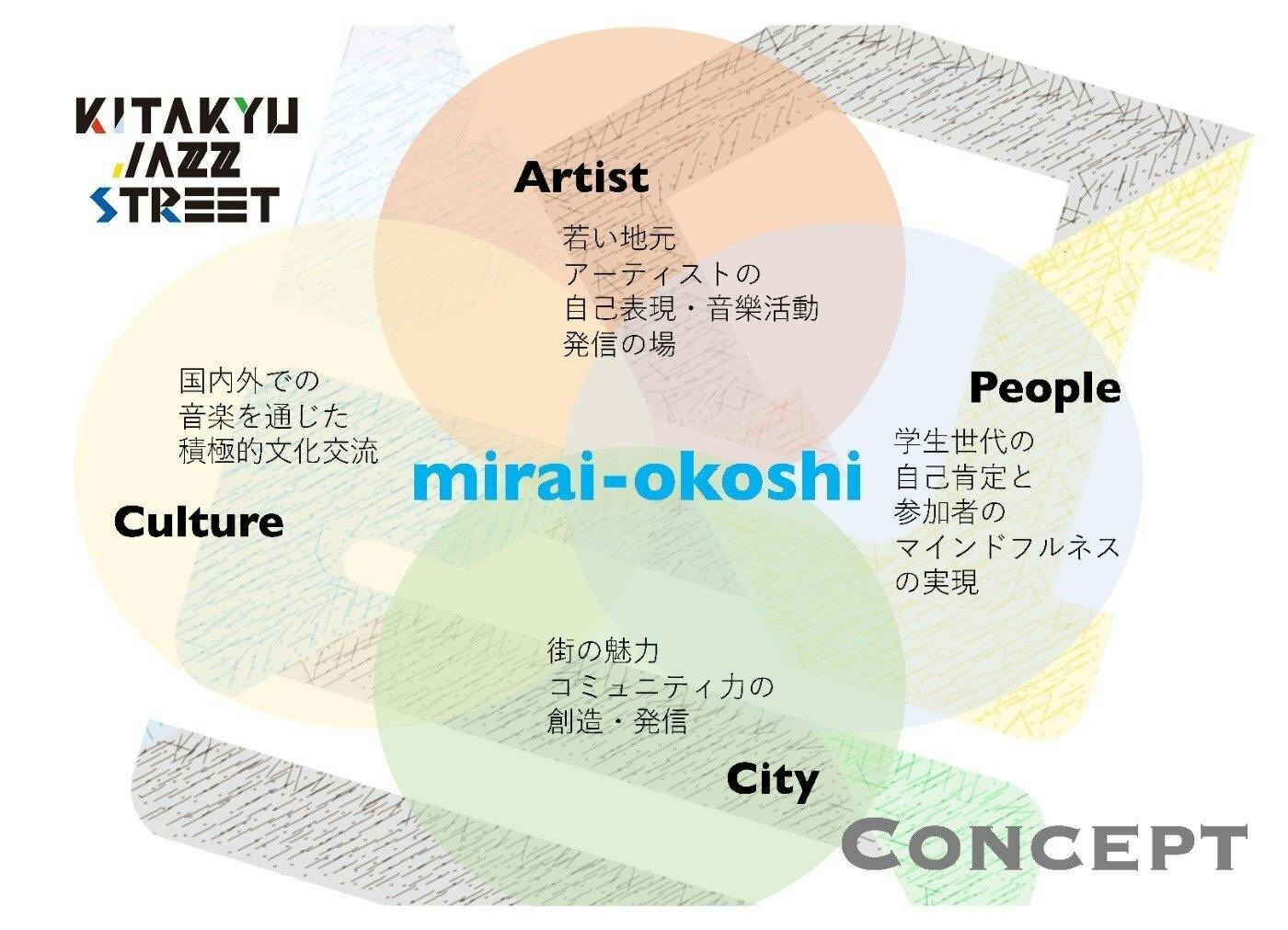 ジャズを中心にロック、ポップ、ゴスペル・・様々なジャンルのアーティストの参加により、子どもから大人まですべてのすべての人が楽しむことができる空間を提供する(プロ・アマ問わず)