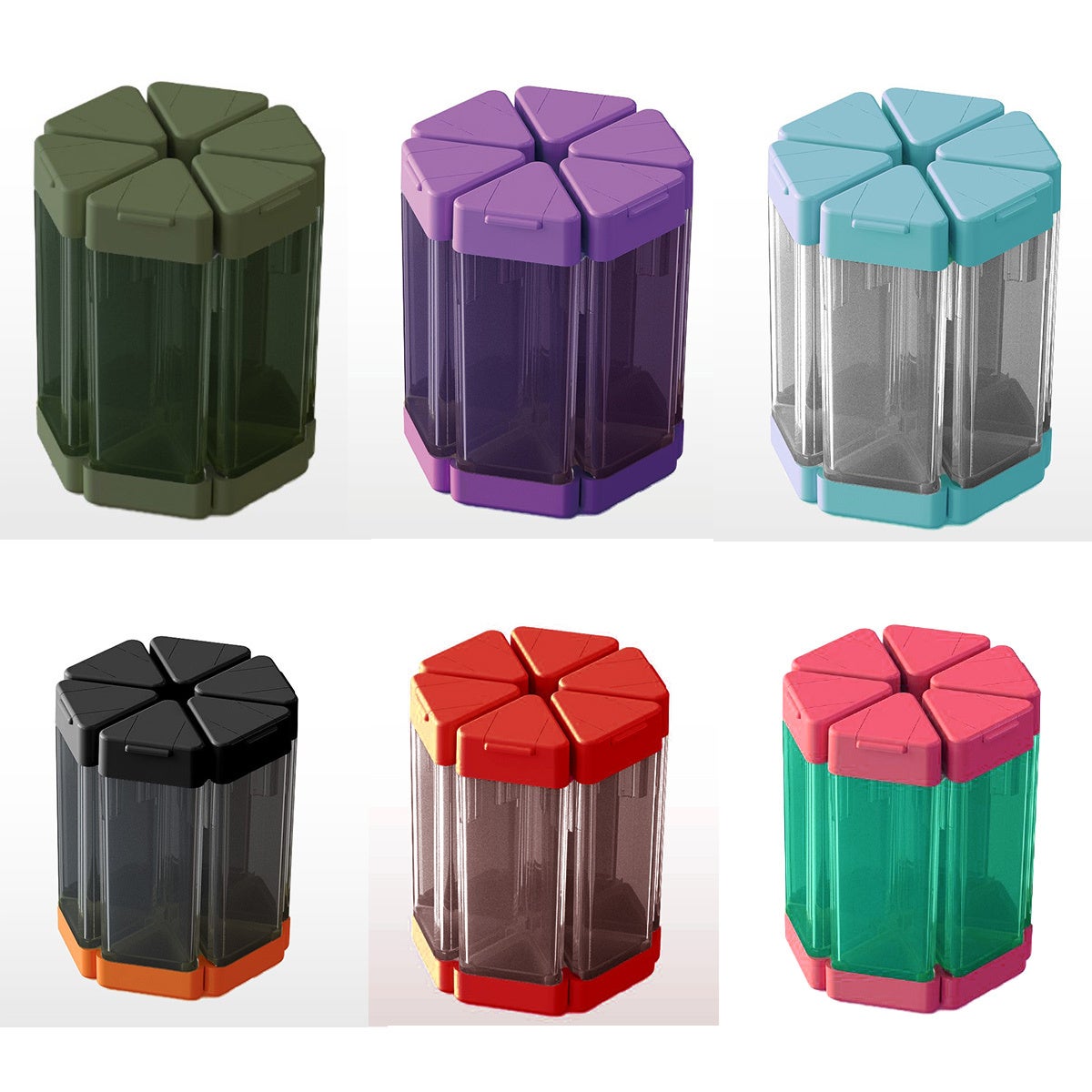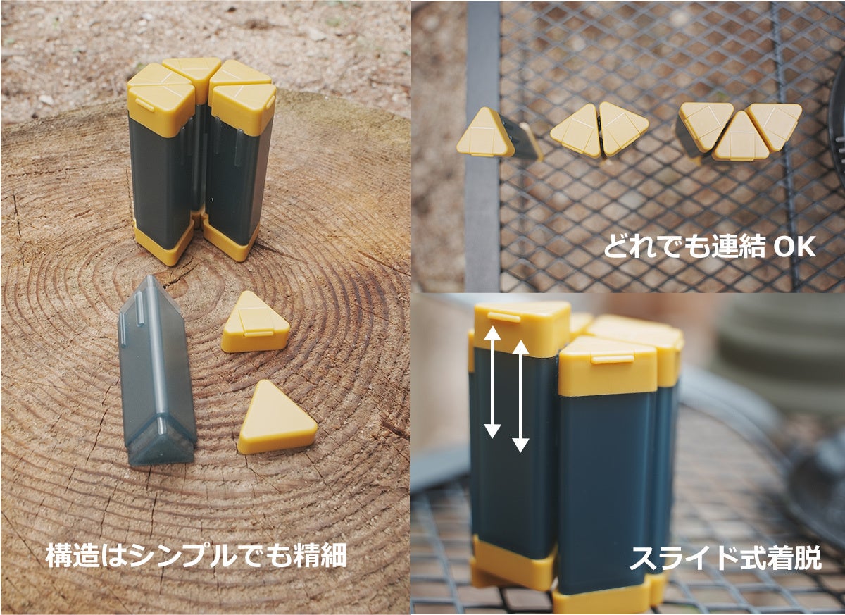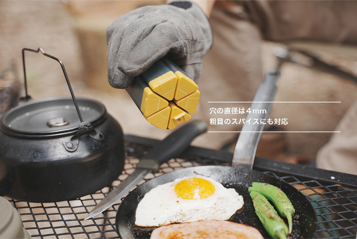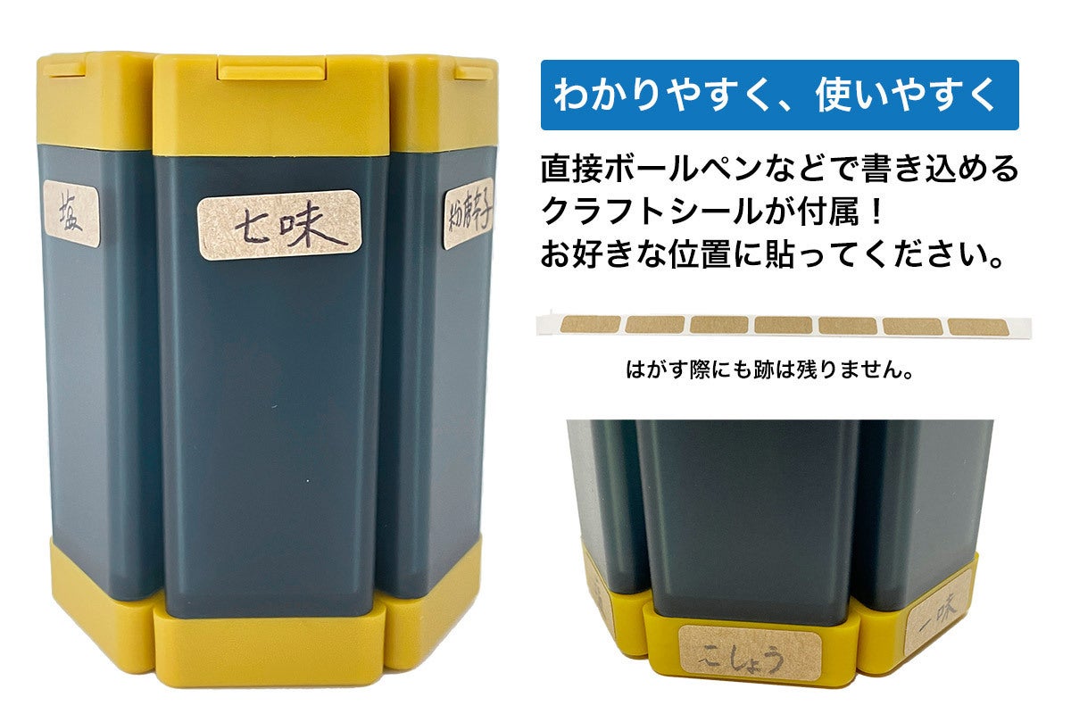 「かさ張るから使い切れるぐらいの量の持ち運びできるケースがないかな…」と思う機会が多く、既製品から探したのですが内容量が多すぎたり、1個、2個しか収納できない事で結局満足いくものがなく、この形なら一気にたくさんの調味料・スパイスや爪楊枝なども詰めて持ち運びできるのでは!?とアイデアが浮かび、知り合いの樹脂成形会社さんに問い合わせするところから始まり、試行錯誤の上に開発した商品です。