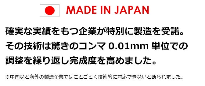 当製品の開発で実感したのは精度の高い製造技術、また細かな調整を行うにあたっての試作と検証の繰り返しにおいて、日本国内の企業でないと実現が出来なかったことです。昨今における海外製造の主流化においてコストの恩恵は多少あれども、コミュニケーションの問題以上に、製品クオリティに対する意識と責任の差を深く感じました。