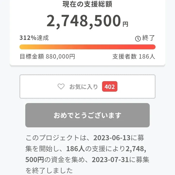 CAMPFIRE手数料:15万円