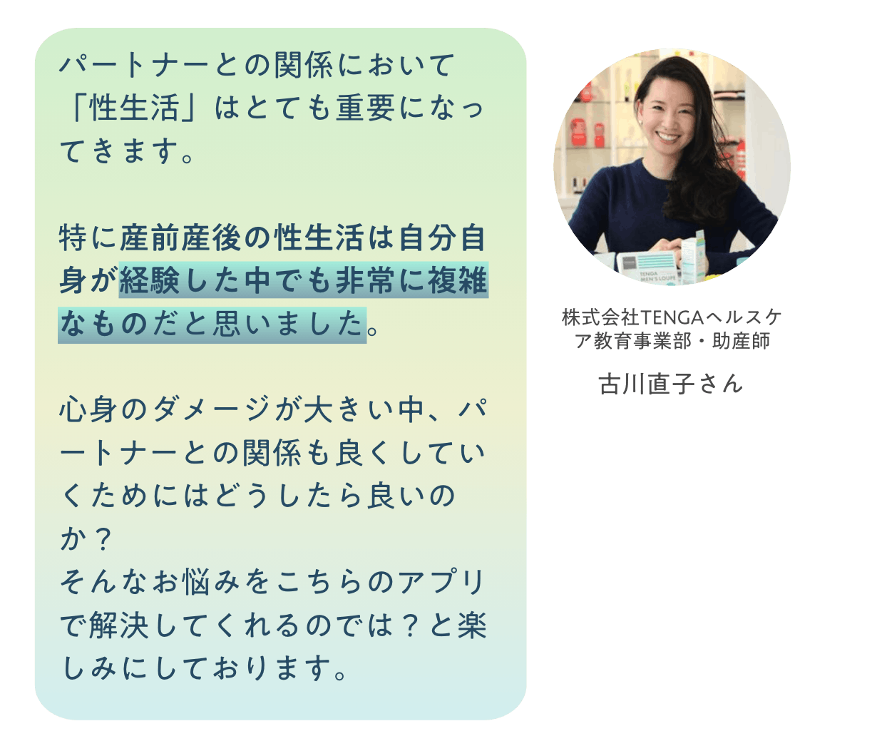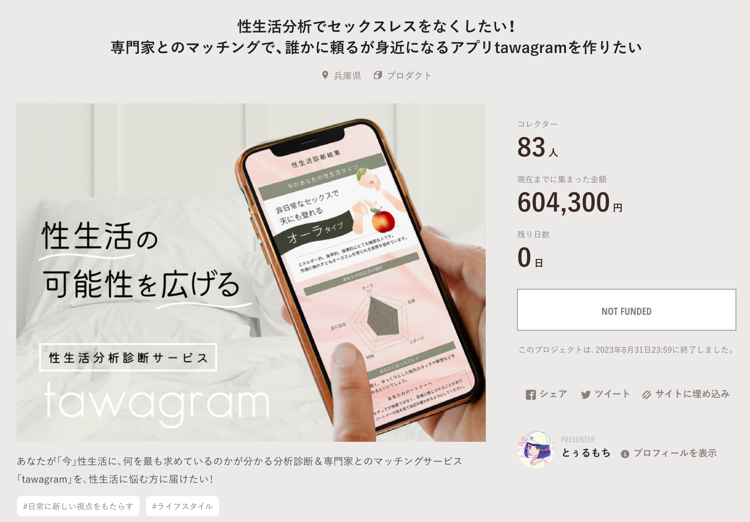 「tawagram」という、パートナーとの性生活を充実させるための診断アプリを開発して、セクシャルウェルネス(性の健康)が当たり前の社会を目指します。