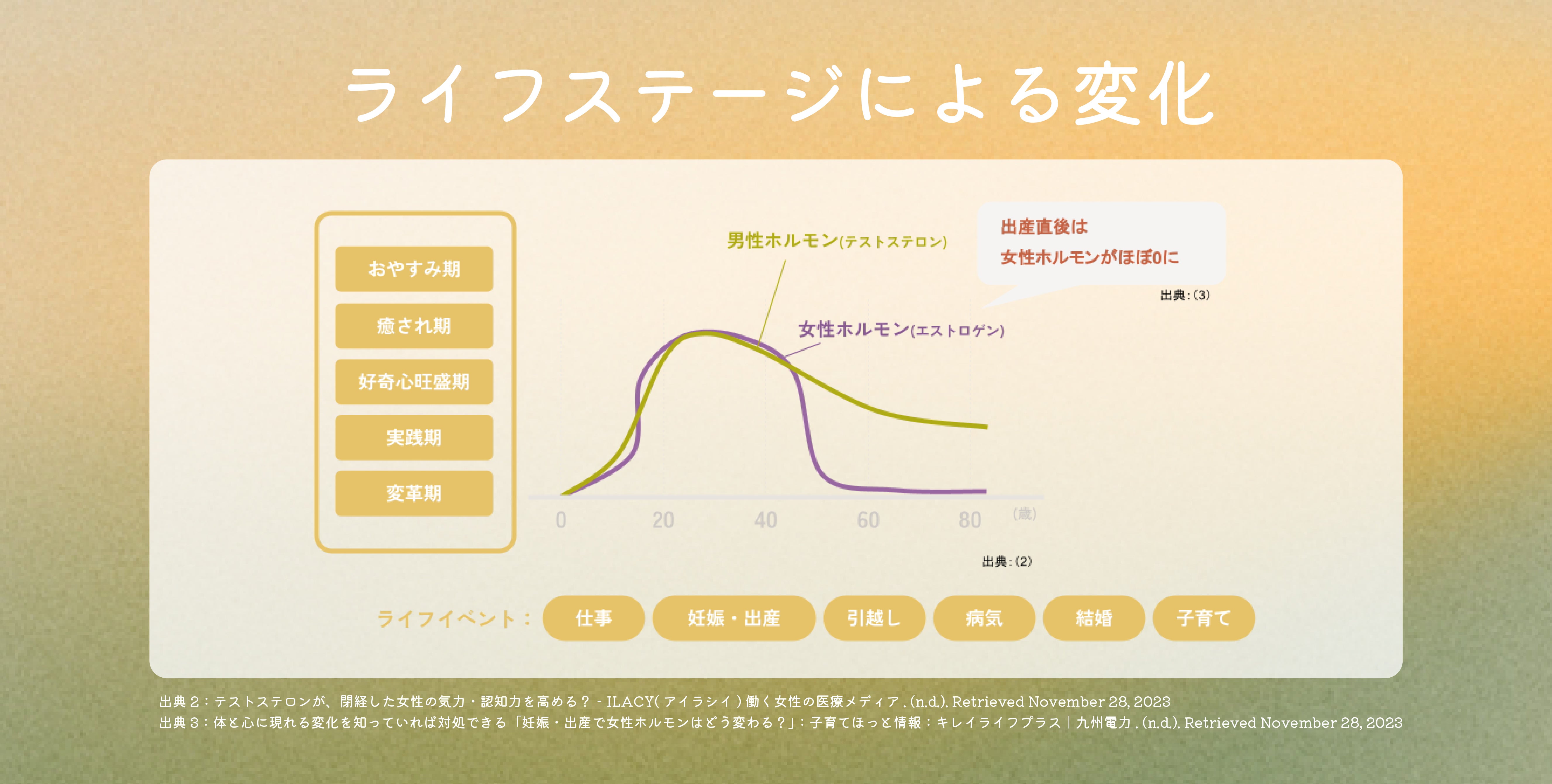 いくつかの質問に答えることで、ライフステージごとに変化する自分の性生活の特徴について知ることができます。