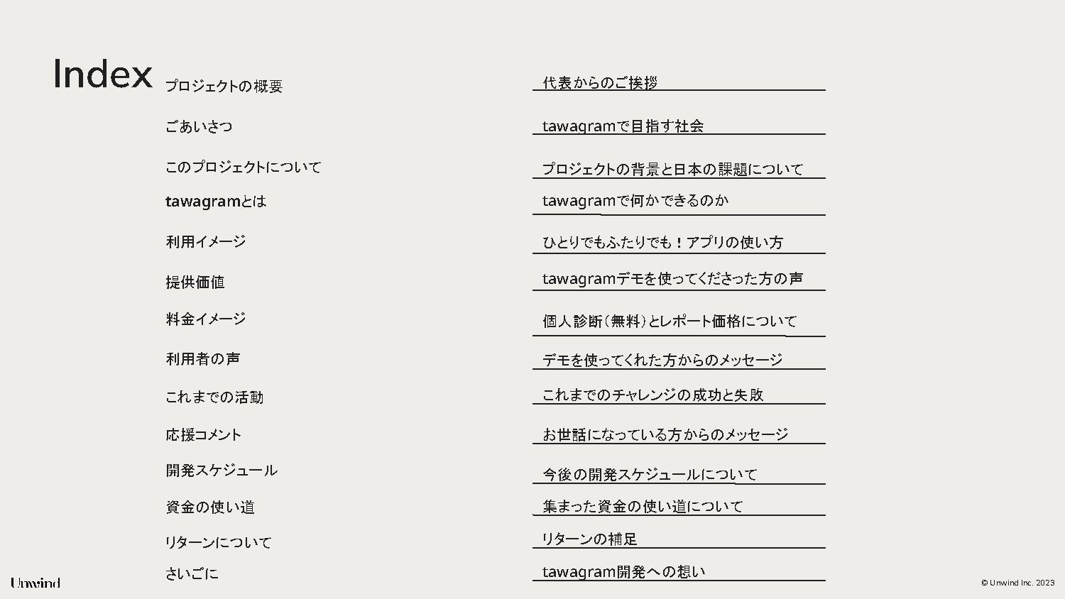2024/10/24 15:15tawagramファウンダーのとぅるもちです。本日10月24日(木)みんなで「セクシャルウェルネスについて考える会」を開催します!特に、セクシャルウェルネスの定義の一つに含まれる「社会的に健康な状態」とは一体何なのでしょうか?「セクハラがない世界」「みんなが主体的に生きれる世界」…いろんな考え方があると思います。ぜひあなたのご意見も聞かせてください。イベントお申し込みはこちらから!イベントについて私たちがより良く幸せに生きるための「ウェルネス」には、心と体の健康が欠かせません。しかし、その中でも特に「セクシャル・ウェルネス」は、タブー視されがちで、多くの方が悩みを抱えている分野です。そこで、この度セクシャル・ウェルネスの重要性を広め、より多くの人々に関心を寄せていただく機会として、オンライン対談を開催いたします。本対談では、セクシャル・ウェルネスに関する様々なサービスの開発・提供に挑戦中のスタートアップ Unwind の代表である萩原佳音と、FemTechをはじめとする女性起業家とイノベーション支援にご活躍中の奥田浩美さんをお迎えし、テーマであるセクシャル・ウェルネスについて語り合います!対談で取り上げる主なトピック セクシャルウェルネスとは? 自分自身のセクシャルウェルネスを理解するためには、どのようなプロセスやステップが必要? セクシャルウェルネスが満たされていると、どのような「良い結果」が期待されるか?」 パートナーとのセクシャルウェルネスにおけるコミュニケーションに関する悩み・心配事は? Unwindが提供するセクシャル・ウェルネス診断サービス「tawagram」の紹介 本イベントは、特に多くの女性の方々に、セクシャル・ウェルネスの大切さを理解し、自分自身の心と体に向き合うきっかけとしていただける内容となっています。<イベント詳細>- 日時:10月24日 19:00 ~ 19:50- 形式:オンライン(Zoom)- 参加費:無料- 参加申込:Peatix自分の心と体に正面から向き合い、ウェルネスを追求するための一歩を、一緒に踏み出してみませんか?皆様のご参加をお待ちしております!イベントお申し込みはこちらから! もっと見る