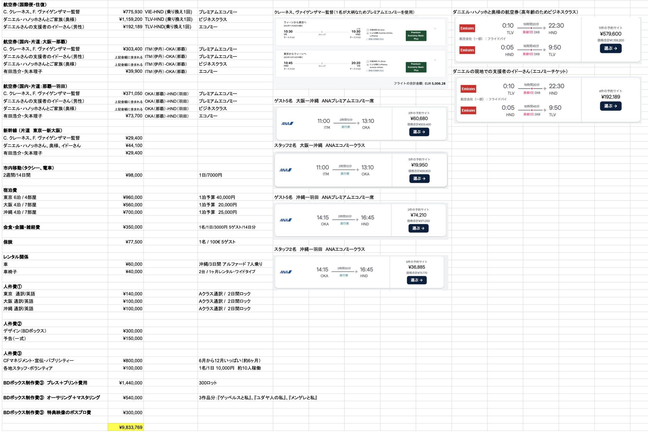 1. ダニエルと監督たちの来日招聘費と2週間の活動費・人件費