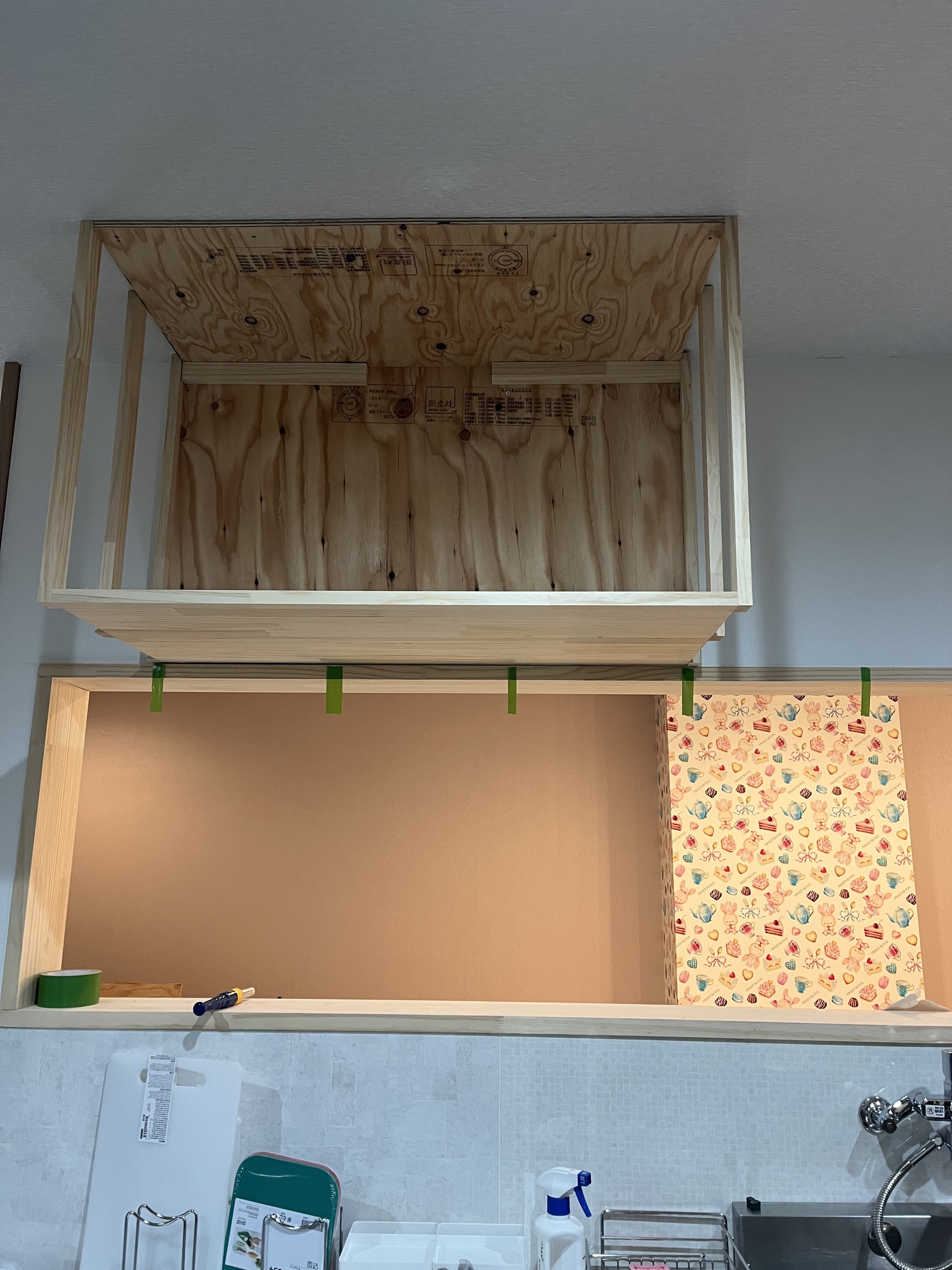 さて、店舗の進捗はといいますと吊り戸棚や収納などが着々と完成しています!収納が少なくて悩んでいましたが、なんとかしまえそうな感じです。⬇