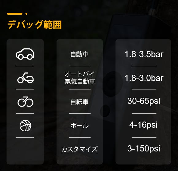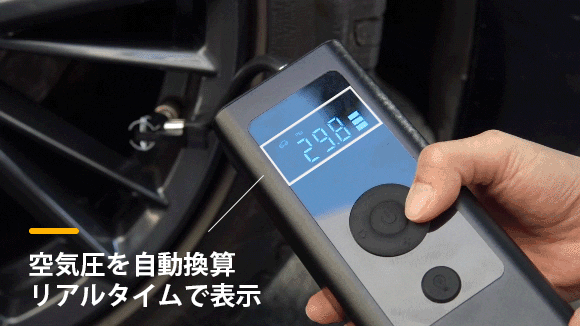 タイヤの空気圧は安全なドライビングに影響します。HB-NX8Cは、すばやくタイヤの空気入れができるだけでなく、いつでも空気圧を測定可能です。空気入れ時に空気圧が設定した数値に達すると自動で停止する安全機能を搭載しているほか、4つの空気圧単位にも対応しており、単位を切り換えるだけで自動換算します。