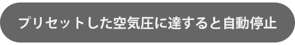使用中にプリセットした空気圧に達すると、空気入れを自動で停止します。この安全機能によって、タイヤの爆発を防ぐことできます。