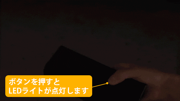 ボタンを押すと上部のLEDライトが点灯します。夜間にボンネットの中を確認したい時、または停電などの非常時に、懐中電灯としてお使いいただけます。