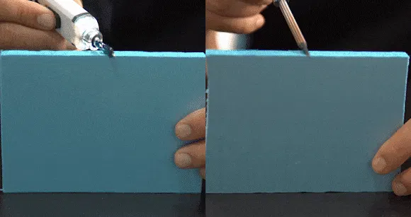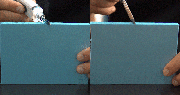 最高温度450℃に達するSP-5は、溶接だけでなく様々な材料の熱切断も可能です。切断した面をシーリングしますので、くずが飛び散りません。