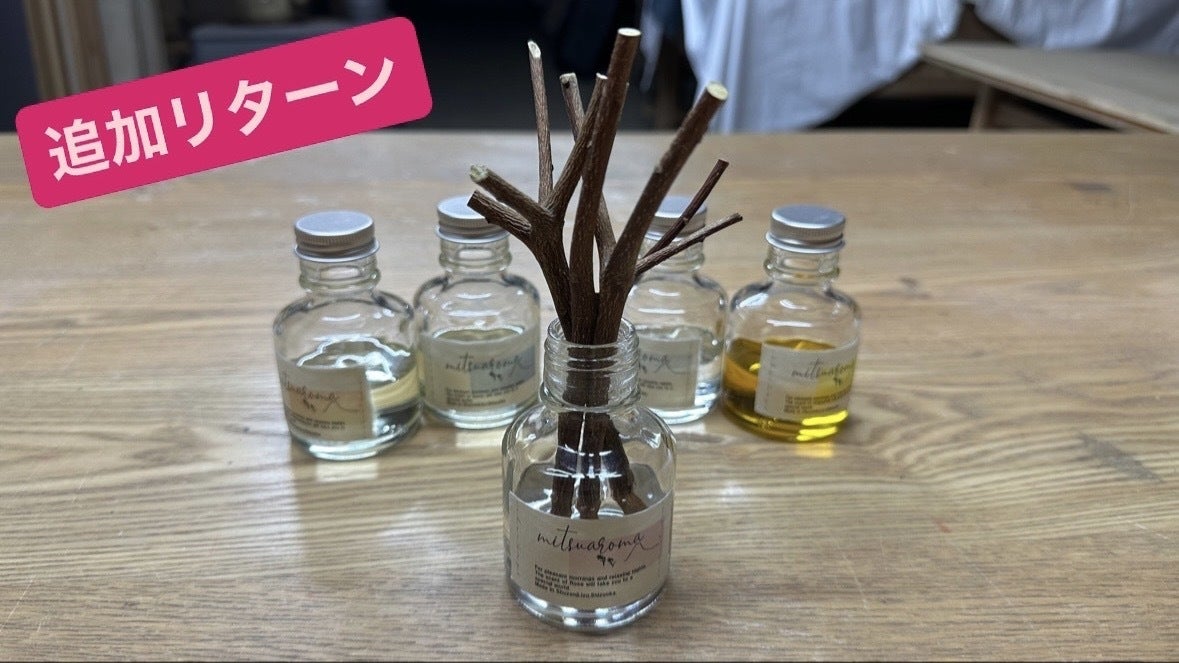 使うことの出来なかった和紙原料のミツマタをリードに使って作ったアロマディフューザーです。ローズ、グレープフルーツ、サボン、ホワイトムスク、金木犀の5つの香りをご用意しております。