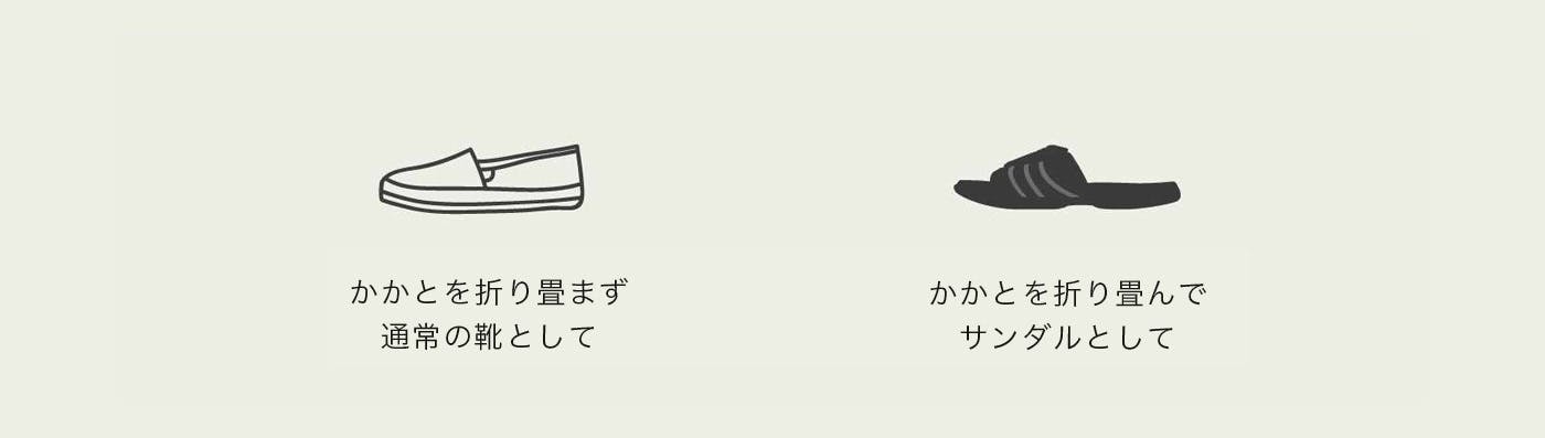 かかとが折り畳めるのでサンダルとしても使用可能です。