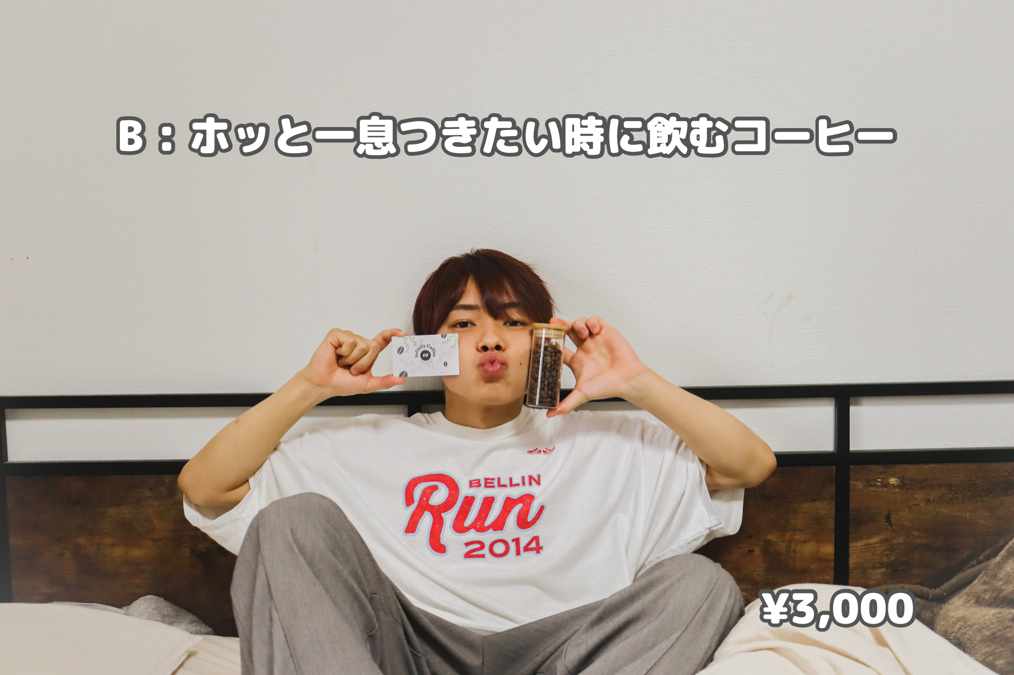 ・B:『ホッと一息つきたい時に飲むコーヒー』100g(粉でもOK)