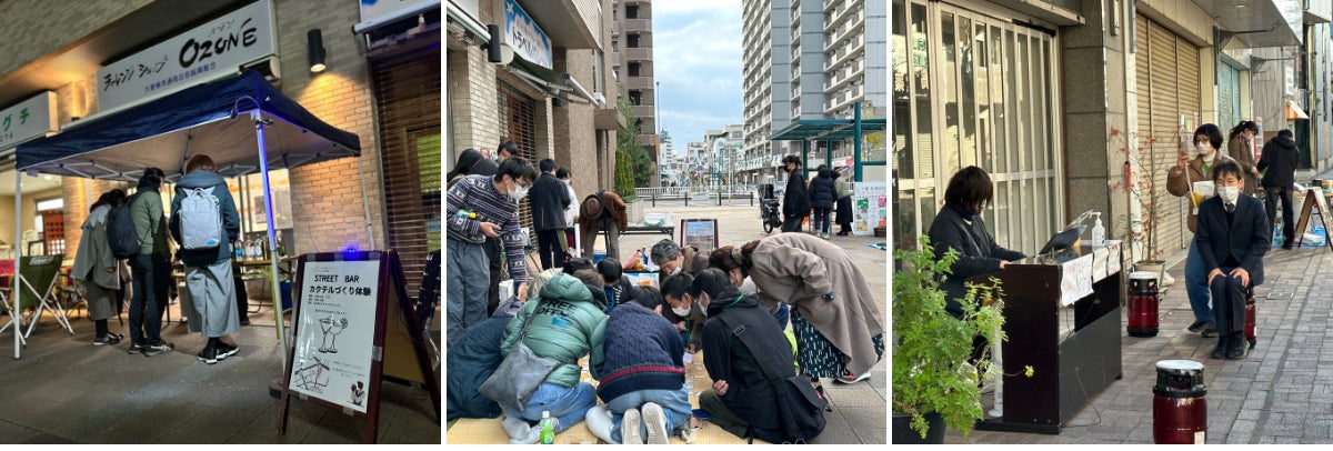 路上でのカクテル作り体験、ボードゲーム大会、ストリートピアノなど